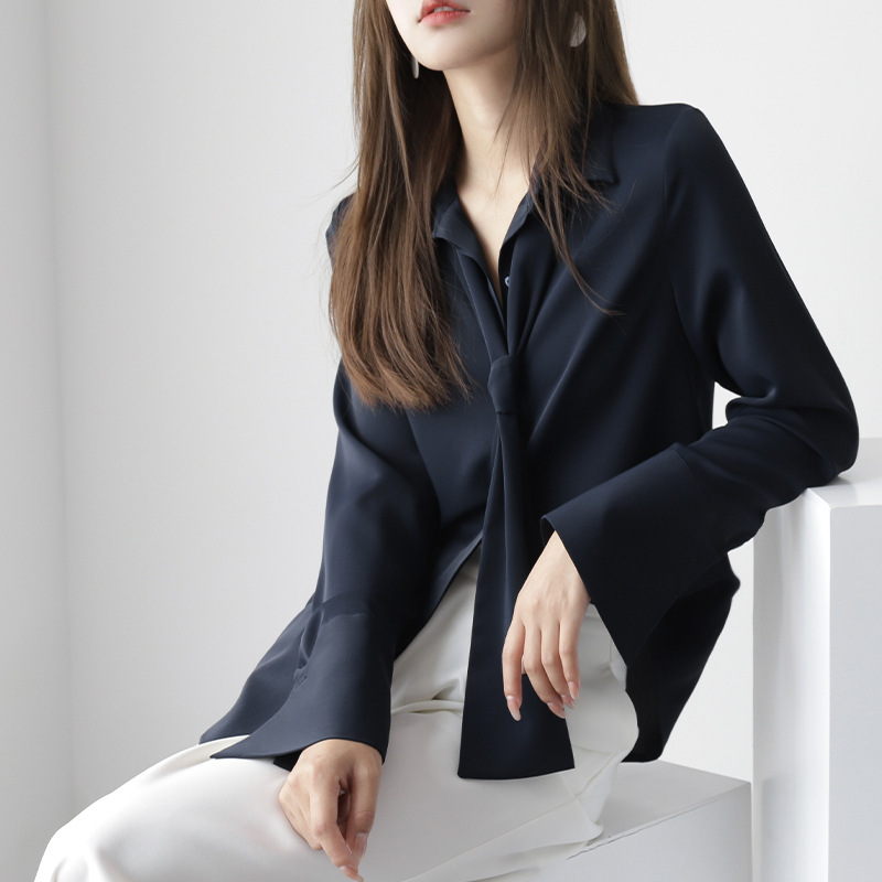 봄과 가을 2023 새로운 한국 스타일 유행 분리형 플로팅 Led 슬리밍 디자인 감각 여성용 긴 소매 쉬폰 셔츠스토어 가기