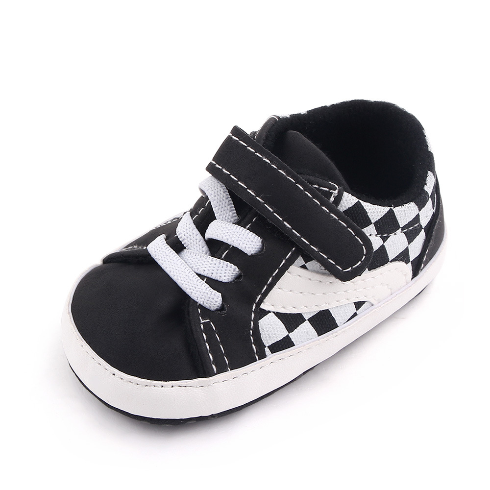 봄과 가을의 새로운 캐주얼 아기 신발 체스 판 흑백 격자 무늬 아기 신발 부드러운 바닥 벨크로 유아 신발 도매 2658스토어 가기