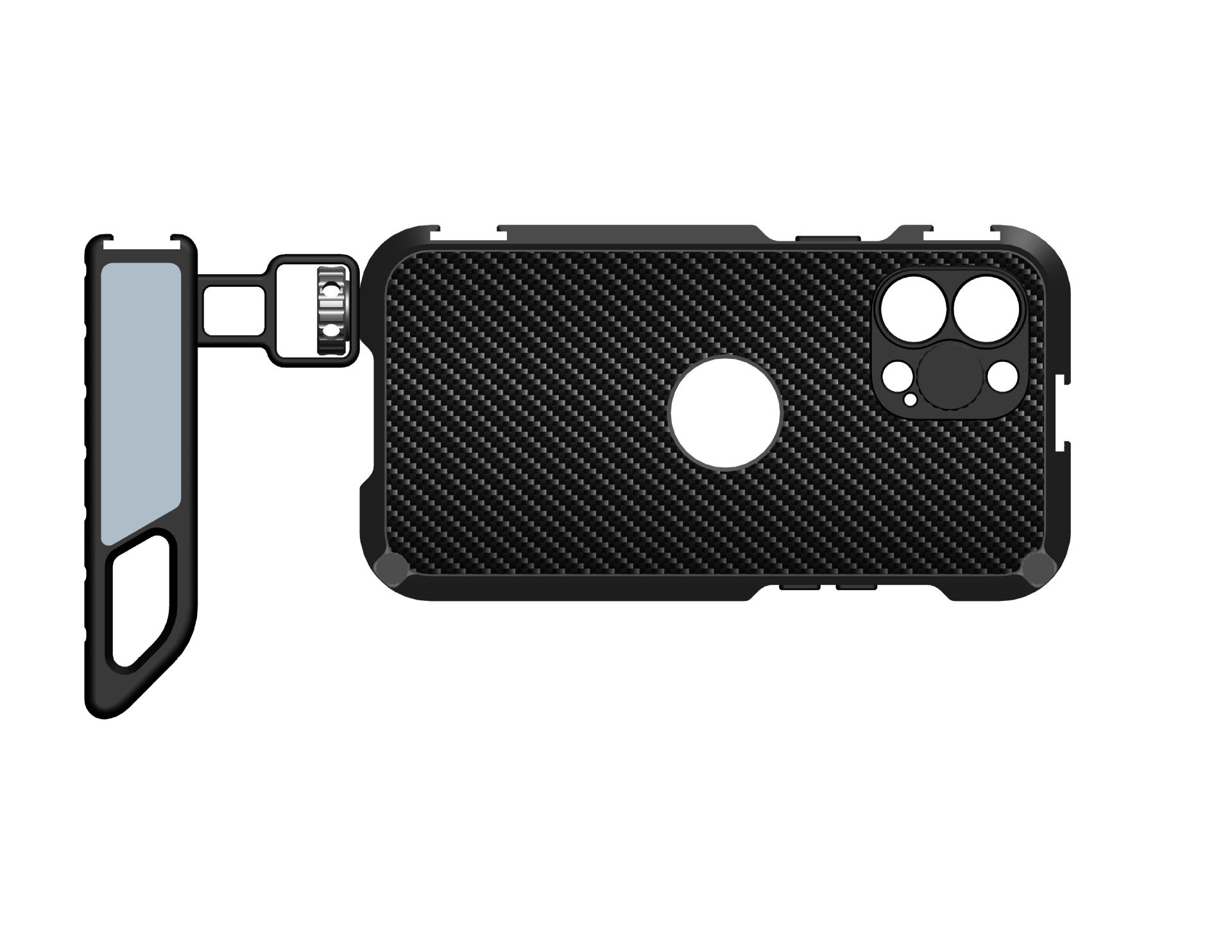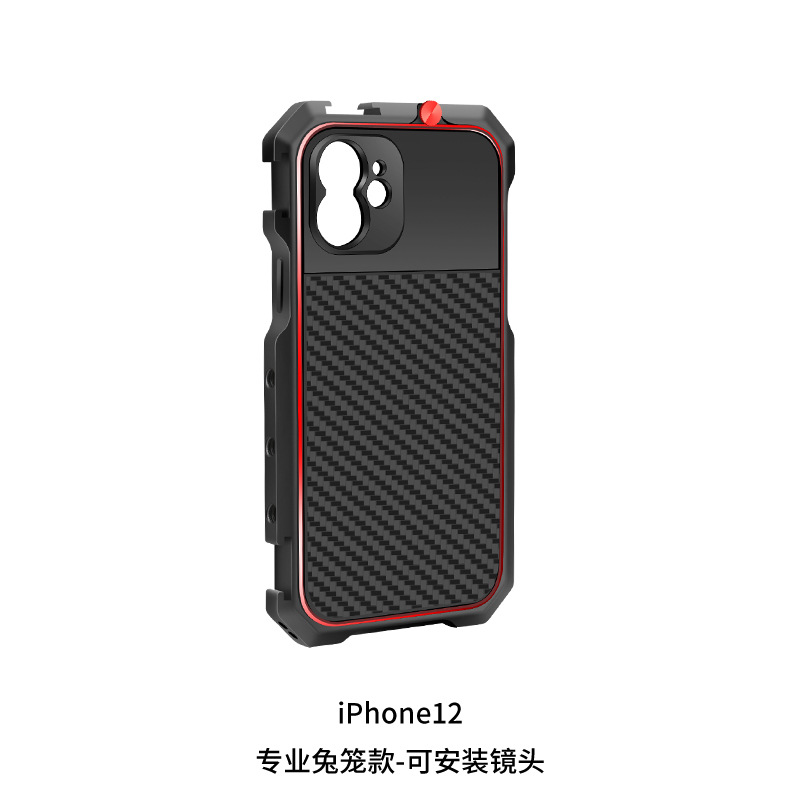 拍摄升级, 专利产品,12系列,13系列手机拍摄兔笼,手机壳主体部分采用铝合金材料制作,边框部分具备1/4螺纹接口,冷靴接口,手机壳背部在手机镜头部分使用了铝合金材料制作,并制作有可用于外接镜头的17mm螺纹接口,兼容市面上大部分手机镜头(仅限带镜头接口版),本手机壳可搭配手机镜头,三脚架,补光灯,麦克风等配件在摄影,直播等场景使用