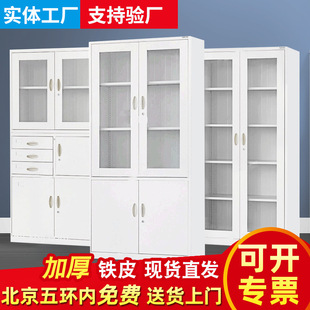 简约透明玻璃门文件柜铁皮两门玻璃柜子办公室玻璃对开资料书柜
