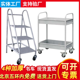工厂批发图书馆手推车 移动三层书车书籍运书车二层书梯图书架子