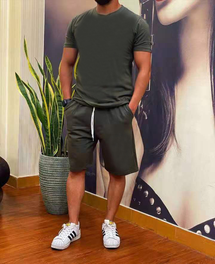 캐주얼 스포츠 정장 남성 여름 반팔 반바지 남성 운동복 남성 국경 공급 통기성 피트니스