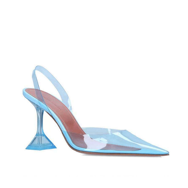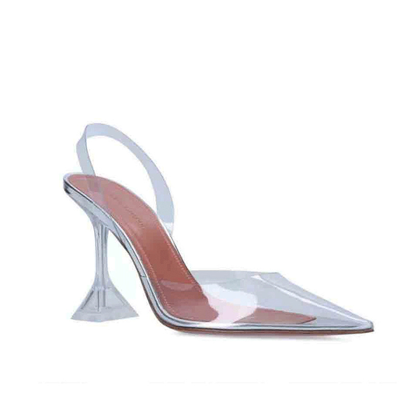 제조업체 AminaMuaddi는 투명한 젤리 시원한 뒤꿈치 신발 여름 섹시한 닫힌 발가락 하이힐 패션 여성 뒤꿈치 신발을 가리 켰습니다.스토어 가기