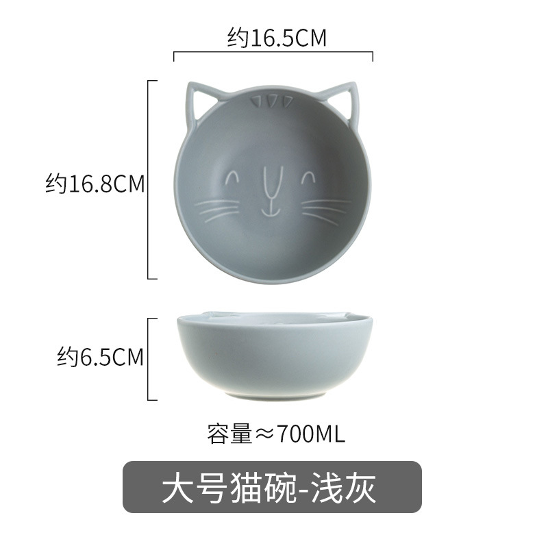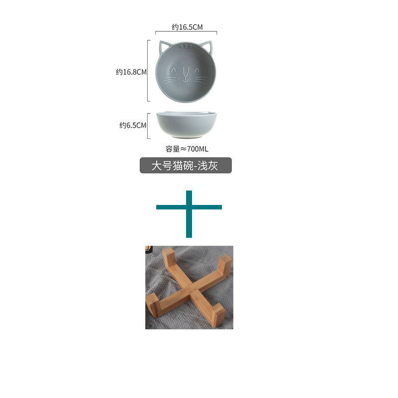 • 큰 안개 회색 고양이 모양의 그릇 + 나무 프레임