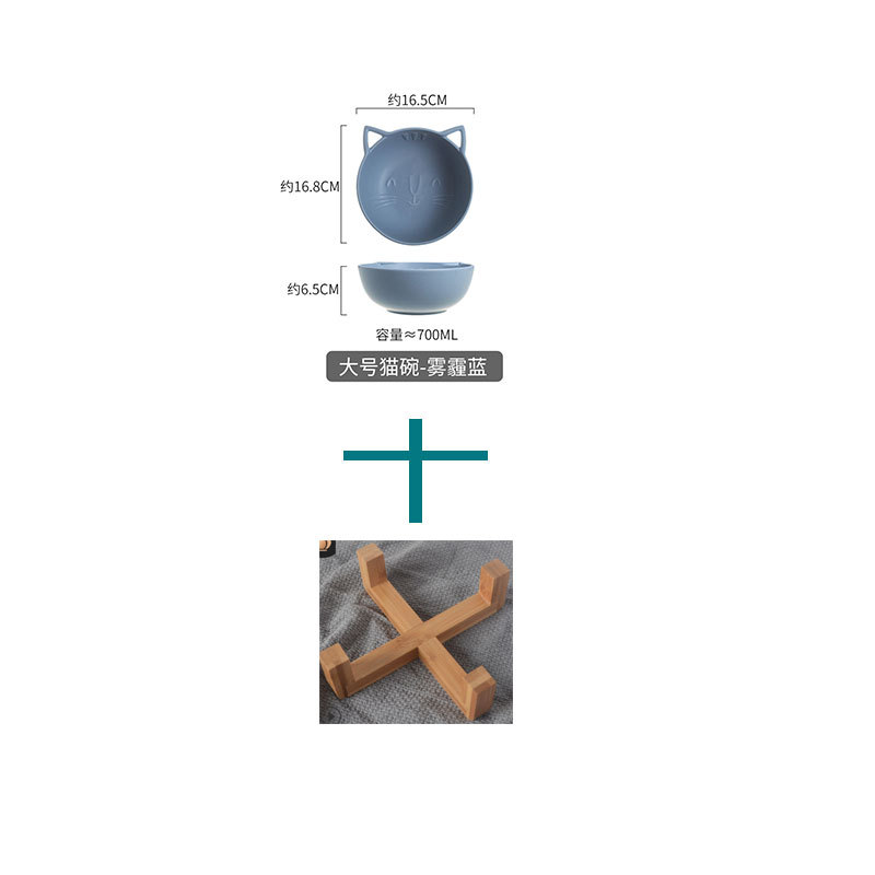 • 대형 안개 블루 고양이 그릇 + 나무 프레임