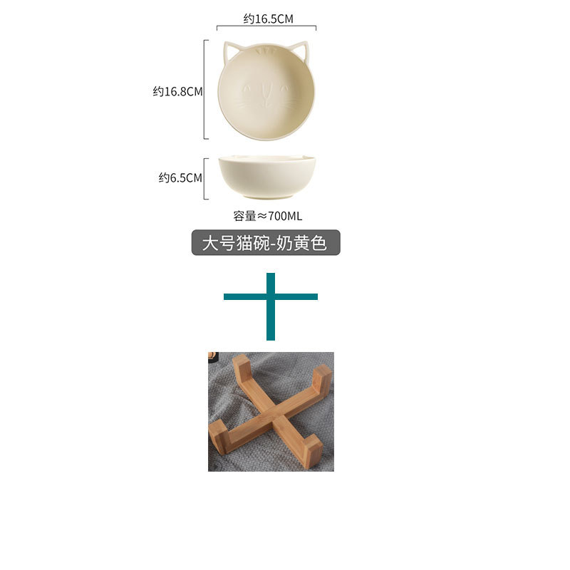 • 대형 우유 노랑 고양이 모양의 그릇 + 나무 프레임