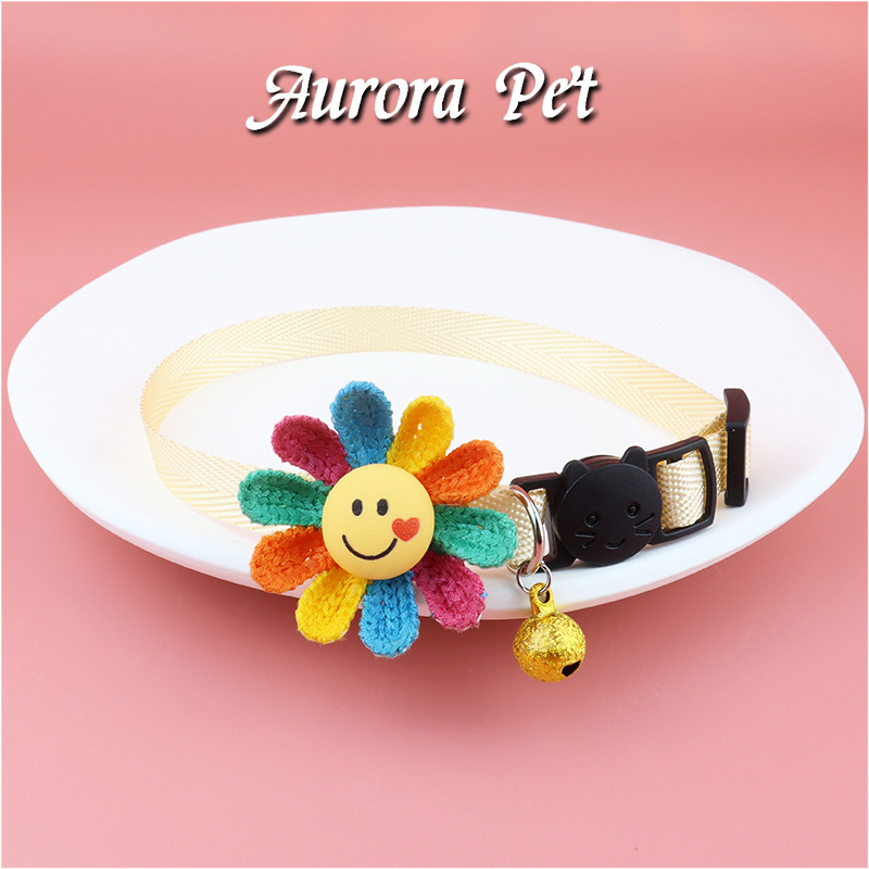 국경 간 애완 동물 용품 도매 고양이 목걸이 스마일 얼굴 화려한 꽃 칼라 벨 칼라 칼라 질식 방지 꽃 보석스토어 가기