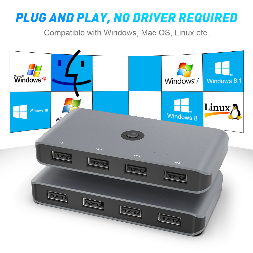 USB 2.0/KVM 스위처 4 in 4 out 공유 변환기 허브 컴퓨터 공유 스위치 허브 허브스토어 가기