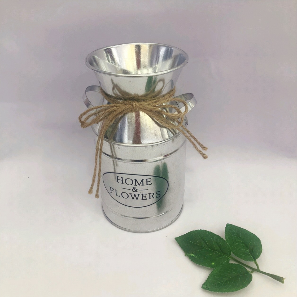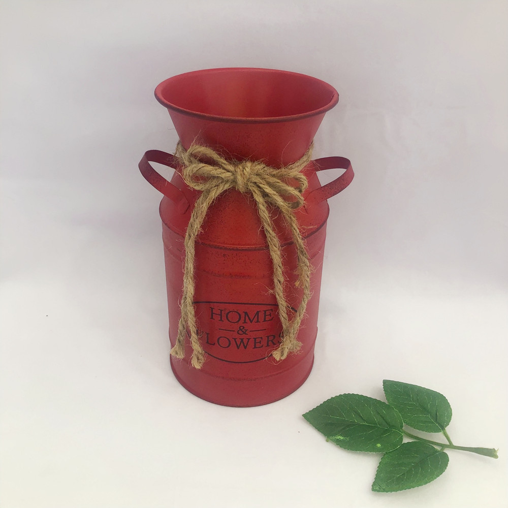 유럽식 복고풍 오래 된 인쇄 LOGE 바 이노 럴 우유 냄비 모양 꽃 배열 철 양동이 홈 거실 데스크탑 장식 장식품