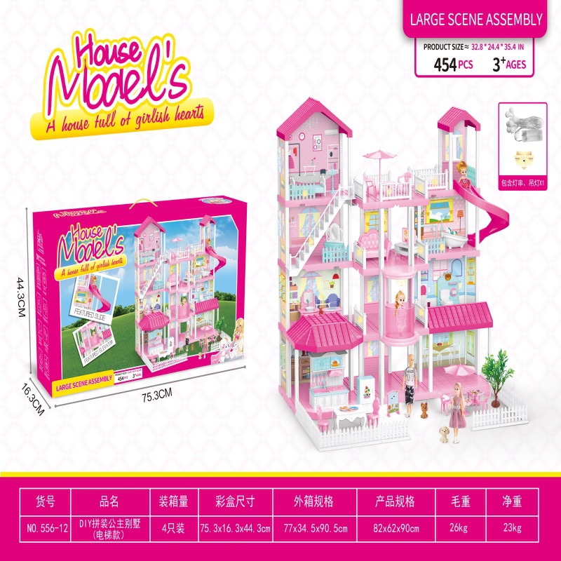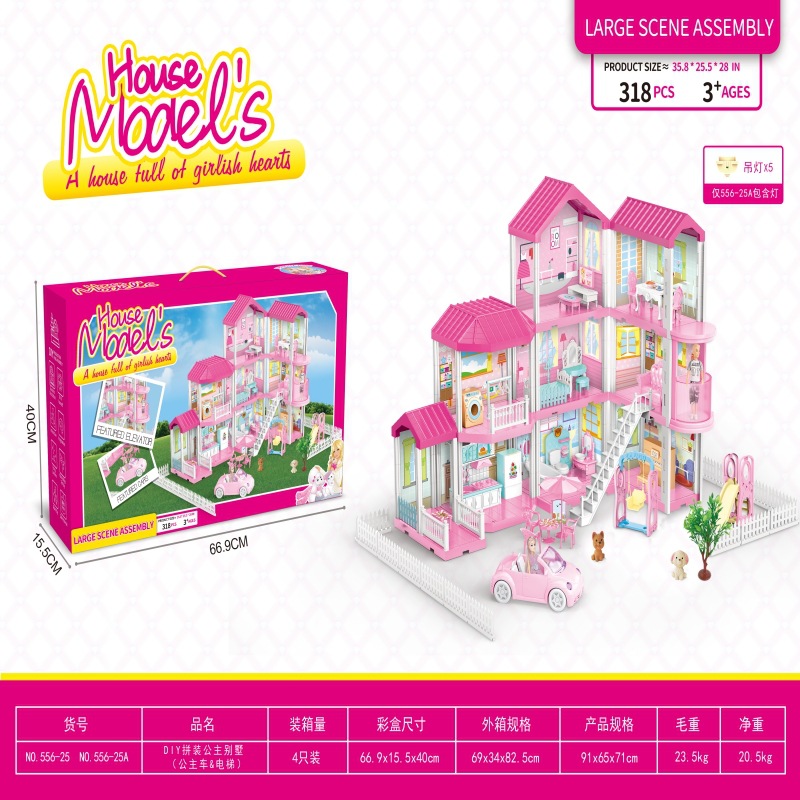 • 556-25A 대형 럭셔리 매칭 카 & 엘리베이터 9 룸 2 인형 5 샹들리에