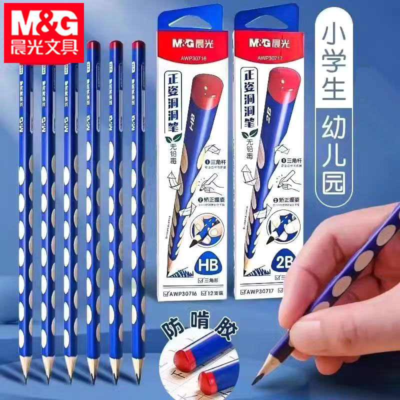 AWP30716 구멍펜슬 HB 학생용 삼각봉 2B 그립 교정용 30717 구멍펜슬 나무연필스토어 가기