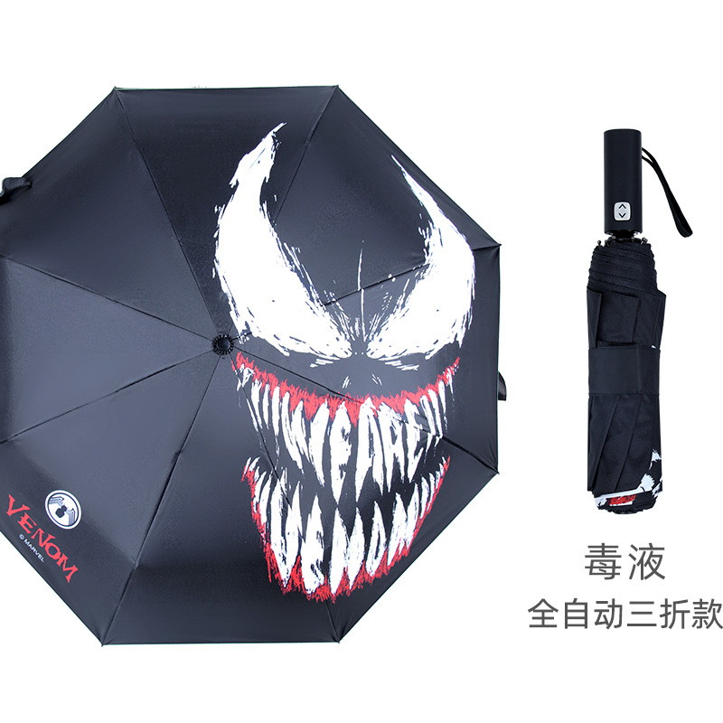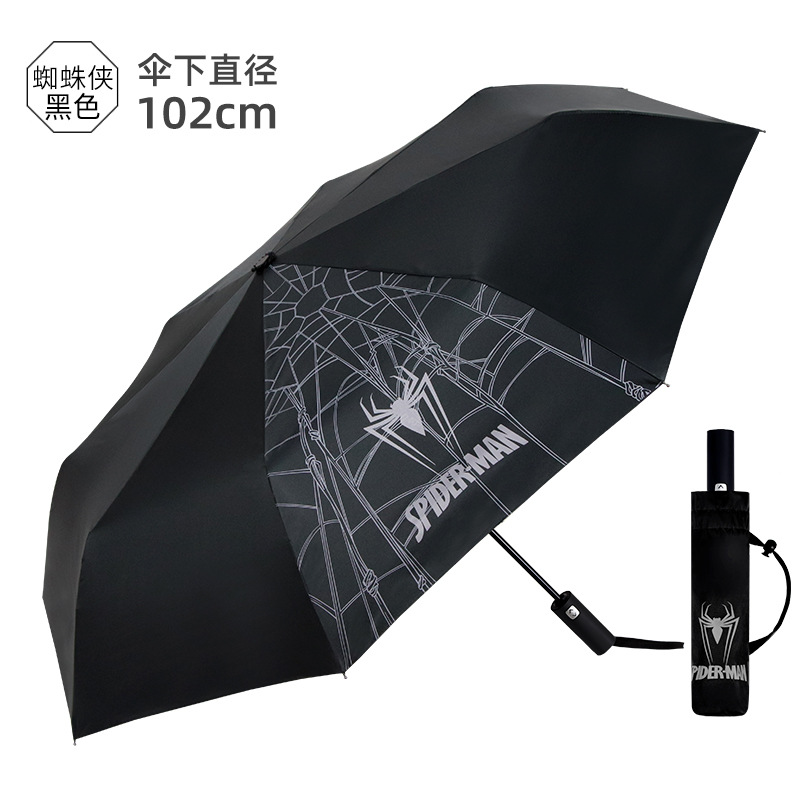 소년을위한 마블 완전 자동 우산 초등 및 중등 학생을위한 잘 생긴 검은 접착제 차양 스파이더 맨 완전 자동 3 배 우산 독스토어 가기