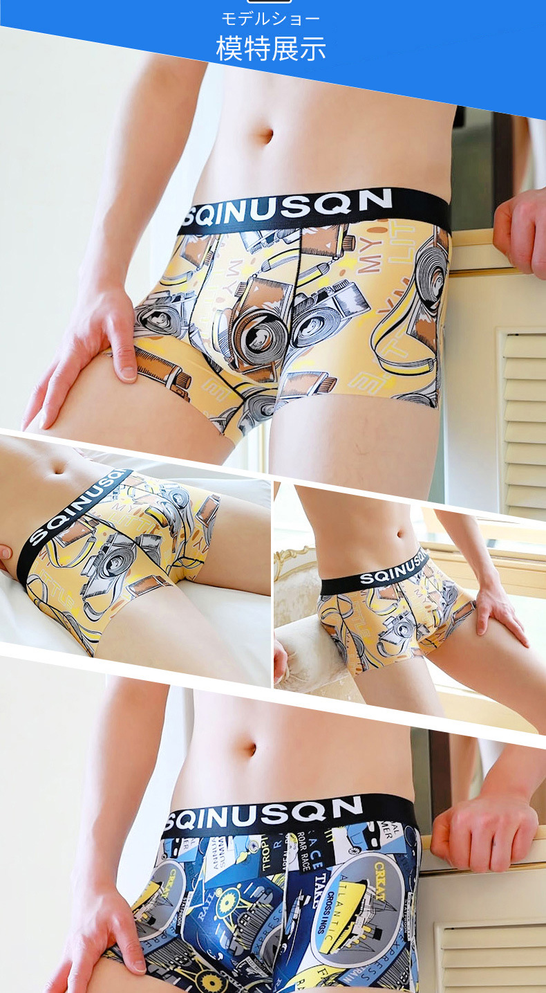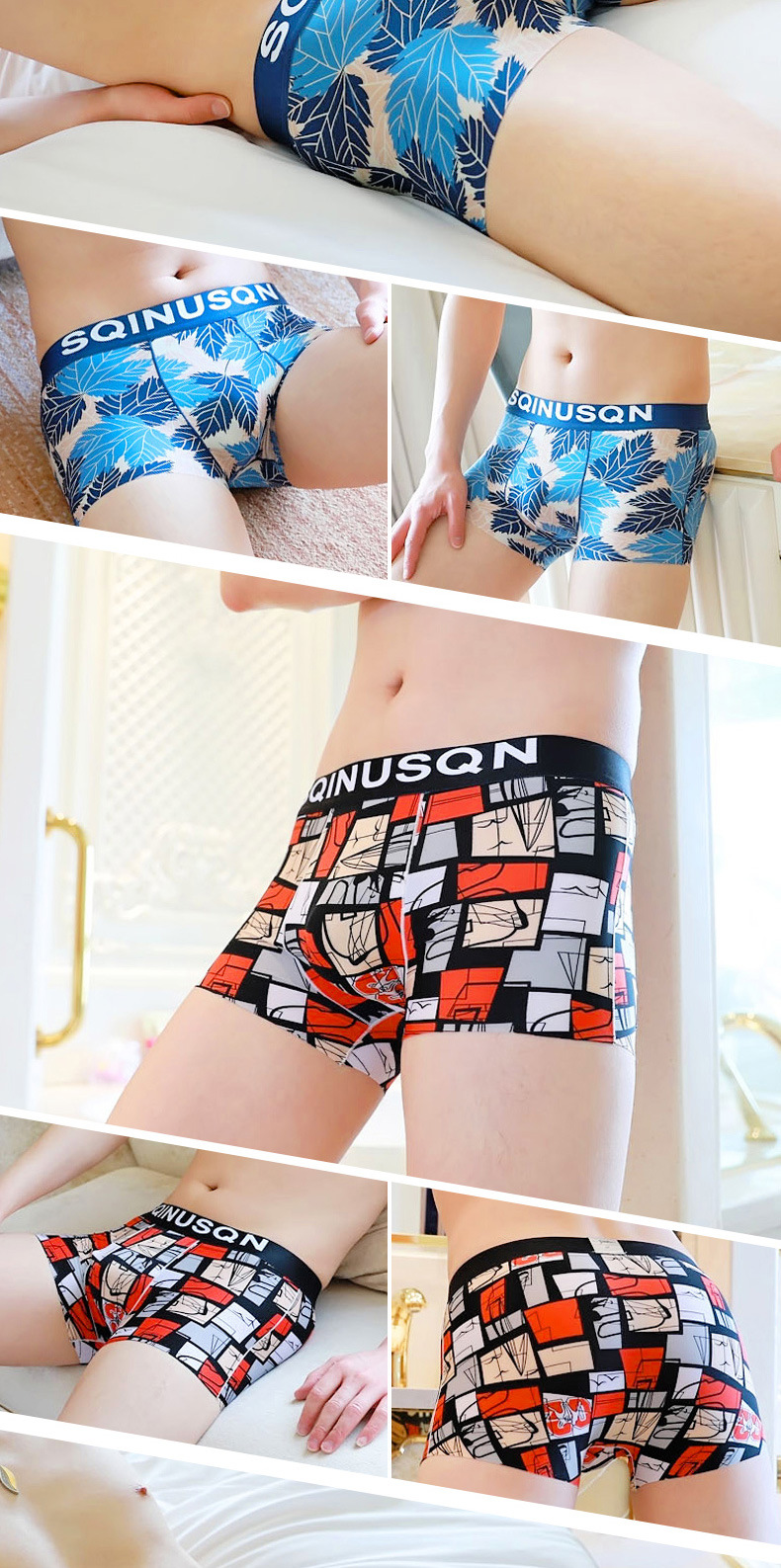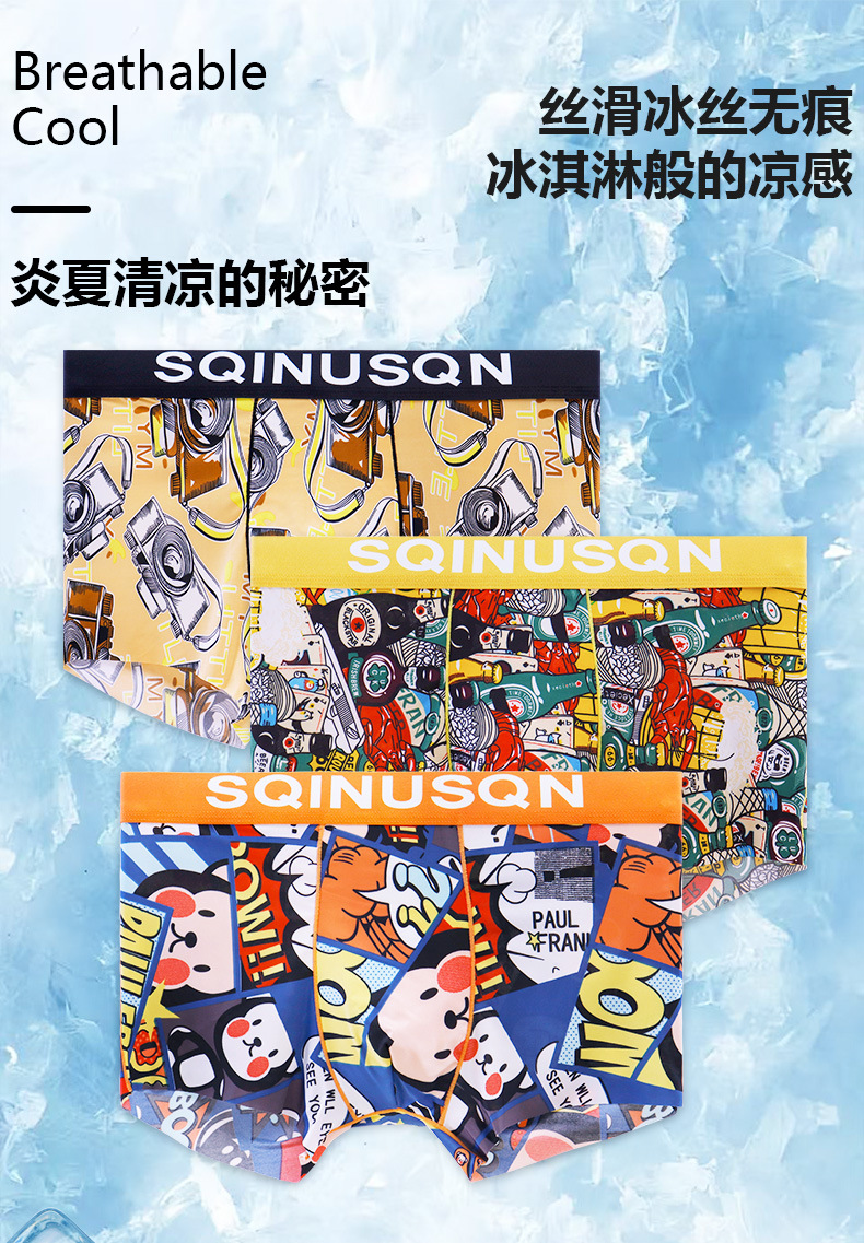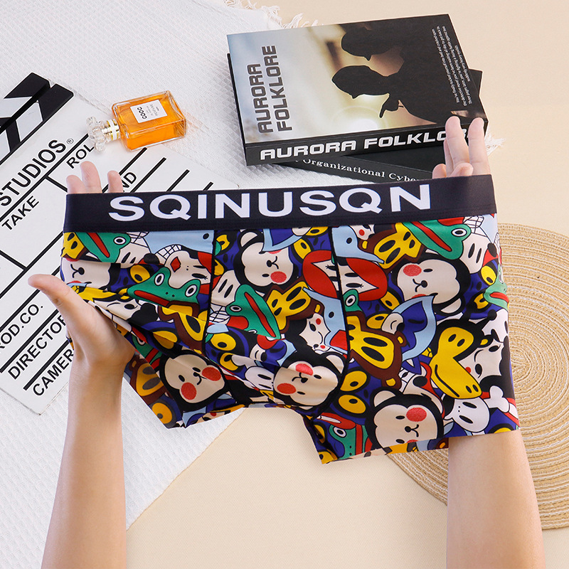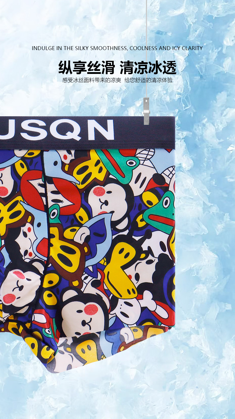 여름 십대 남성 속옷 남자 사각 아이스 실크 개성 만화 인쇄 통기성 짧은 바지 얇은스토어 가기