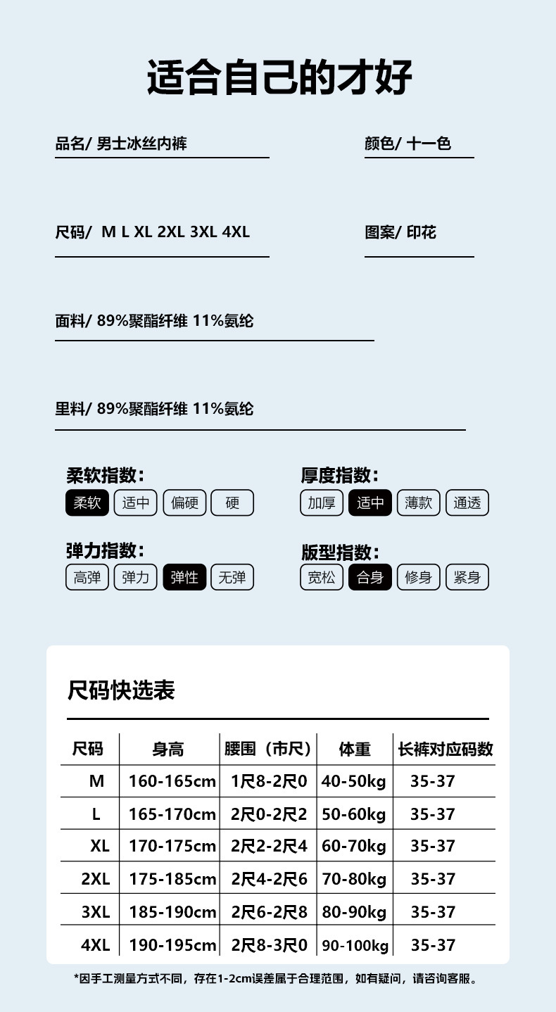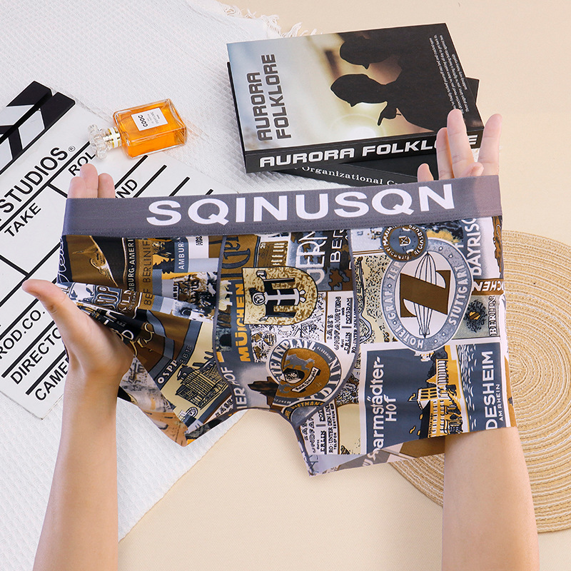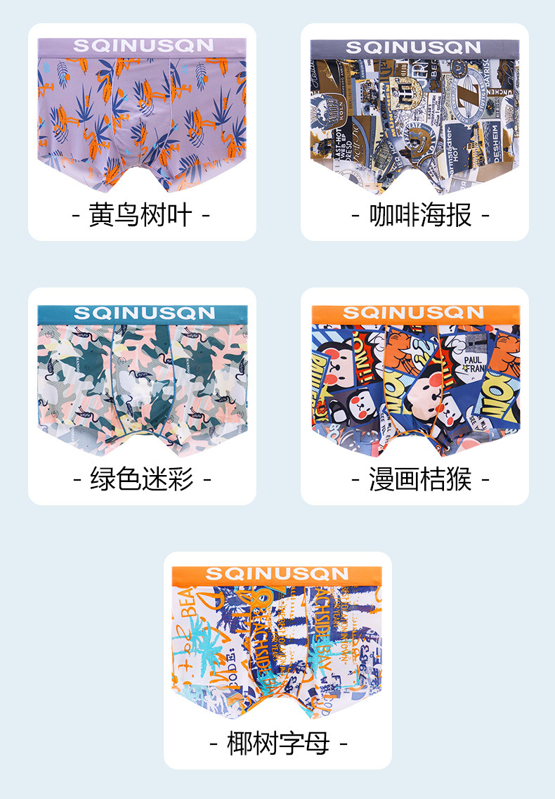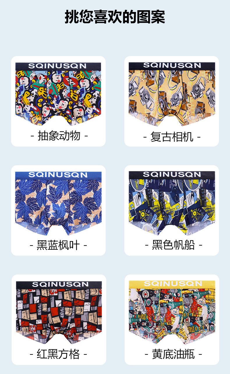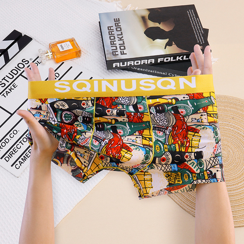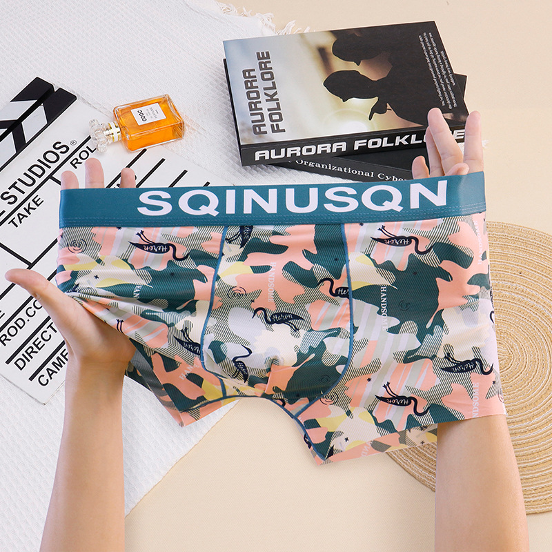 여름 십대 남성 속옷 남자 사각 아이스 실크 개성 만화 인쇄 통기성 짧은 바지 얇은스토어 가기