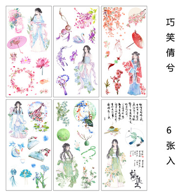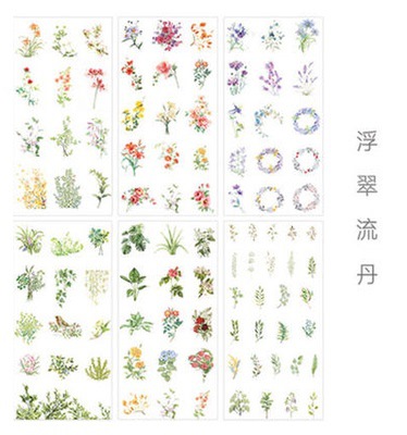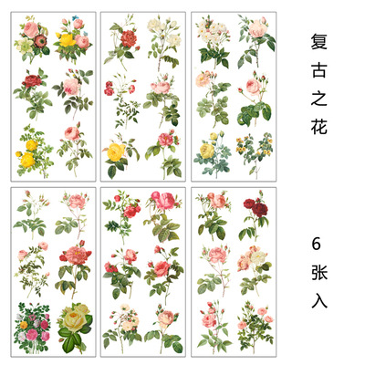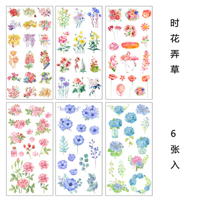 꽃 것들 식물 꽃다발 복고풍 손 계정 및 종이 스티커 장식 작은 패턴 바람 라벨 손 계정 재료 스티커