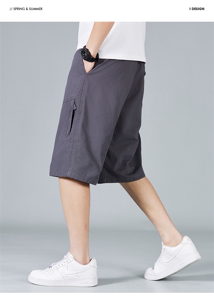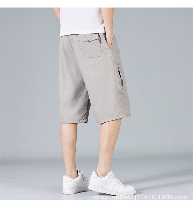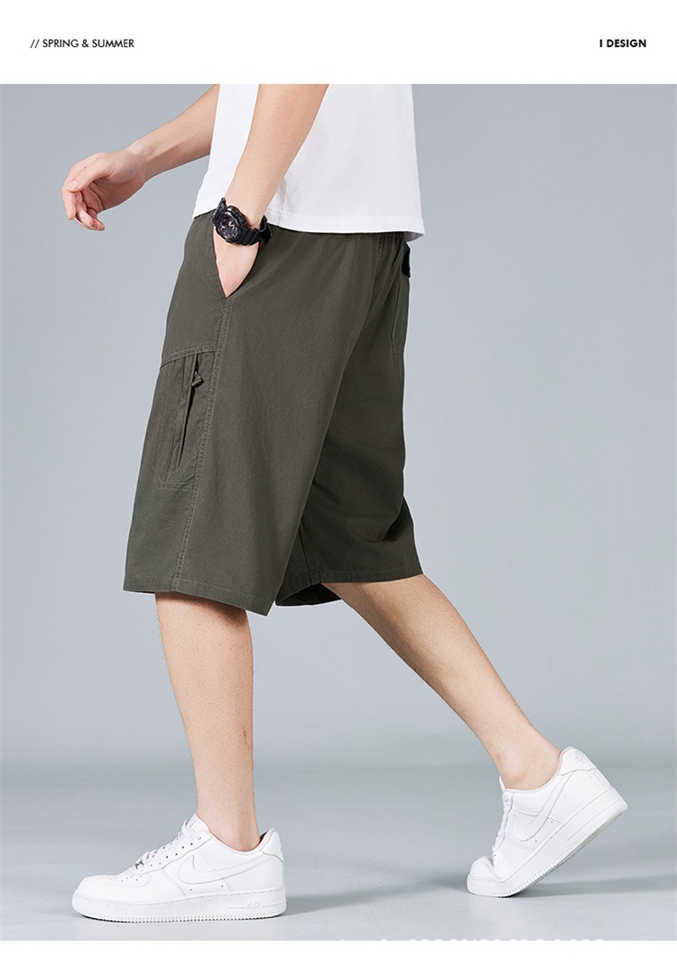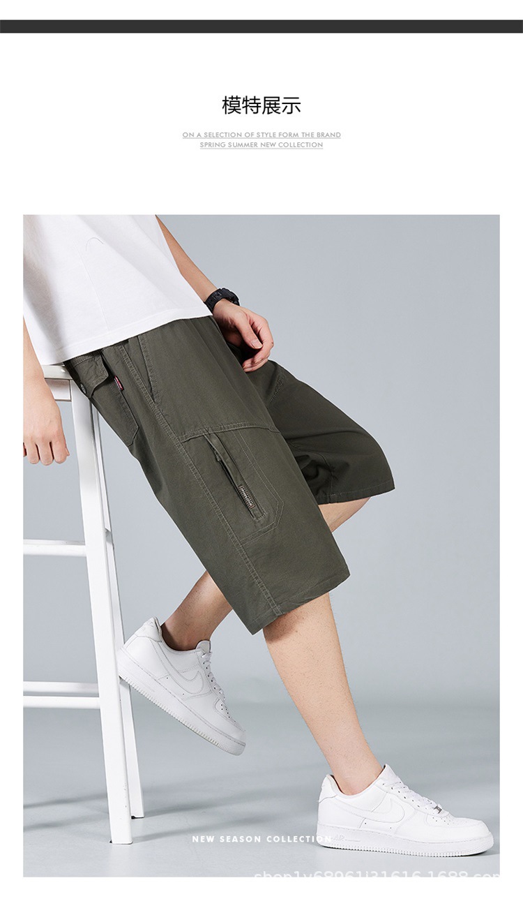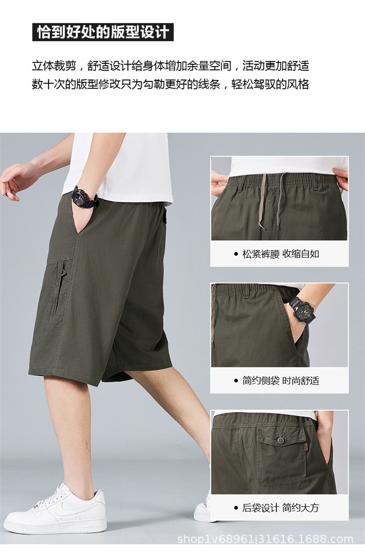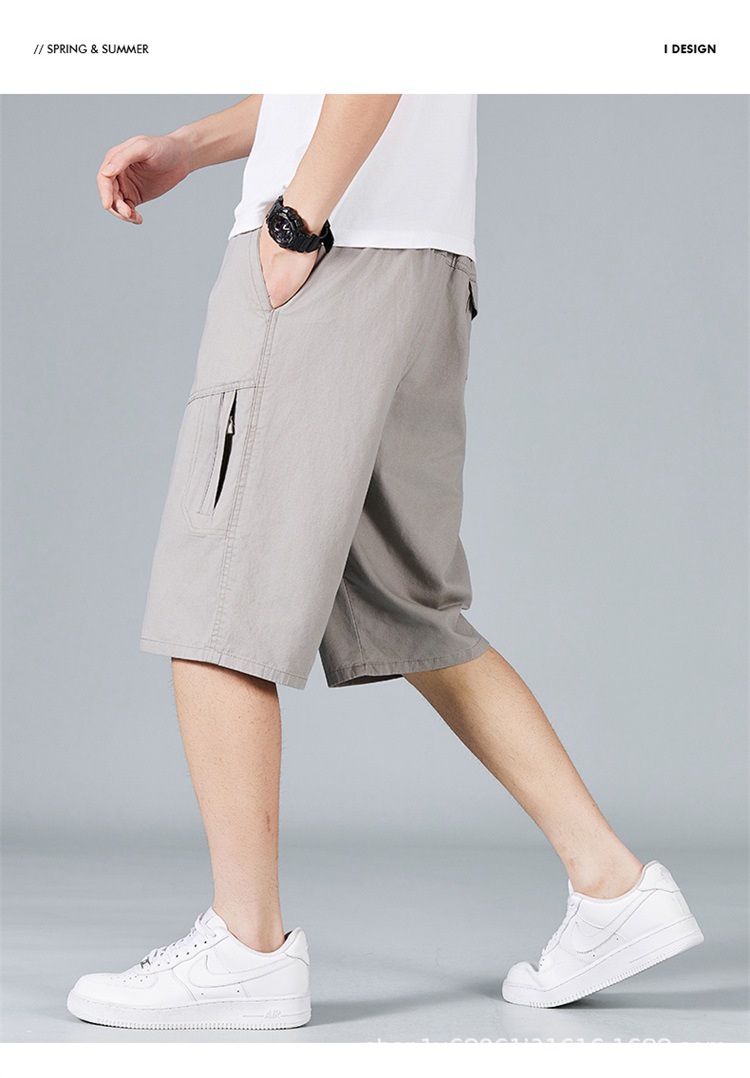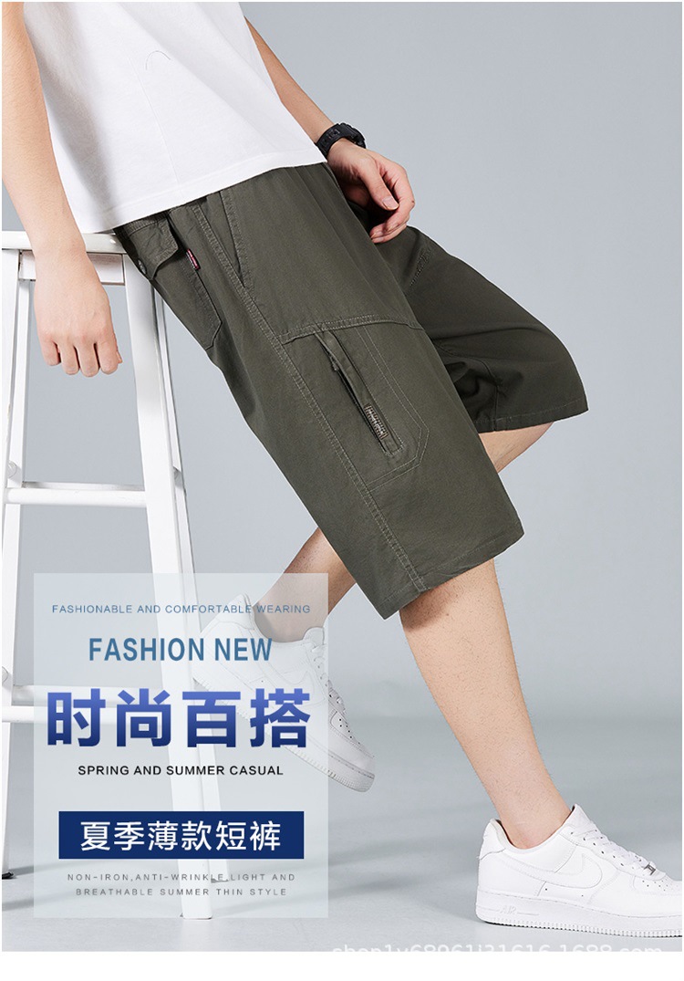 조로칠데 카프리 바지 남자 여름 얇은 반바지 순수 코튼 중간 길이 바지 외부 착용 플러스 사이즈 작업복 바지 캐주얼 루즈스토어 가기