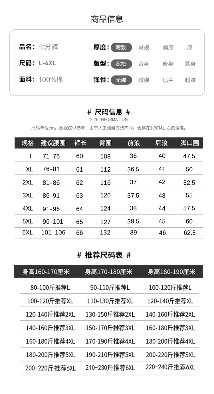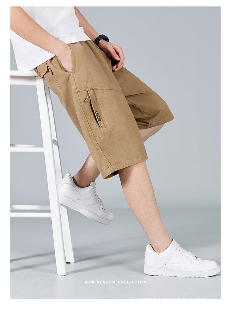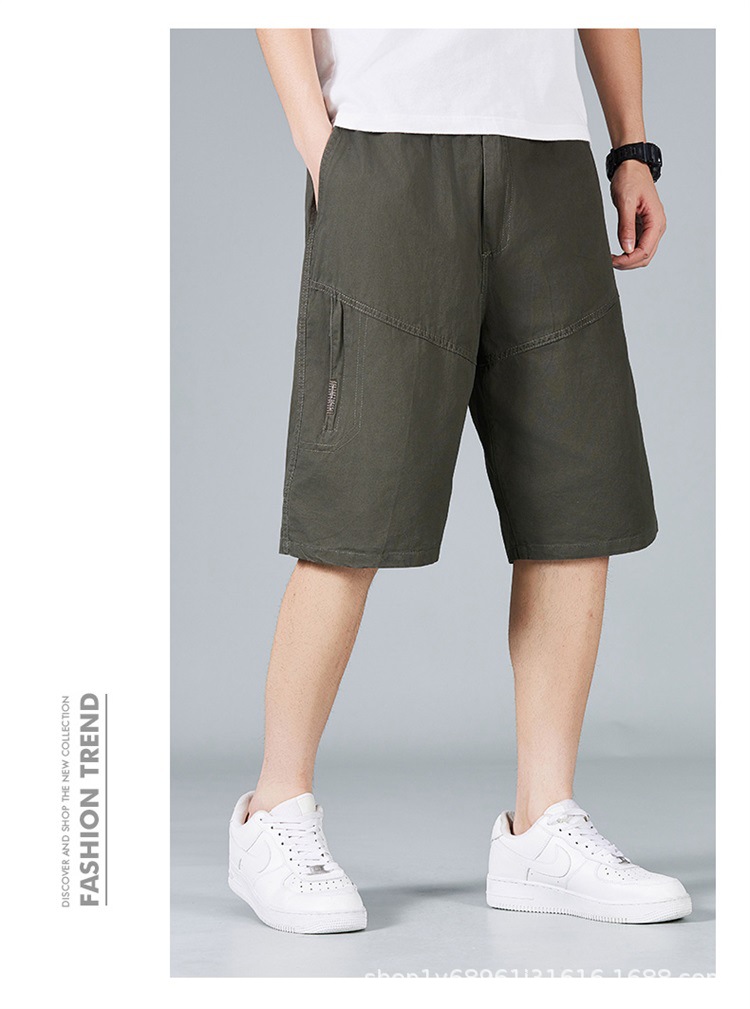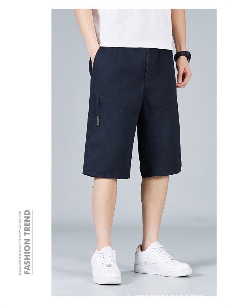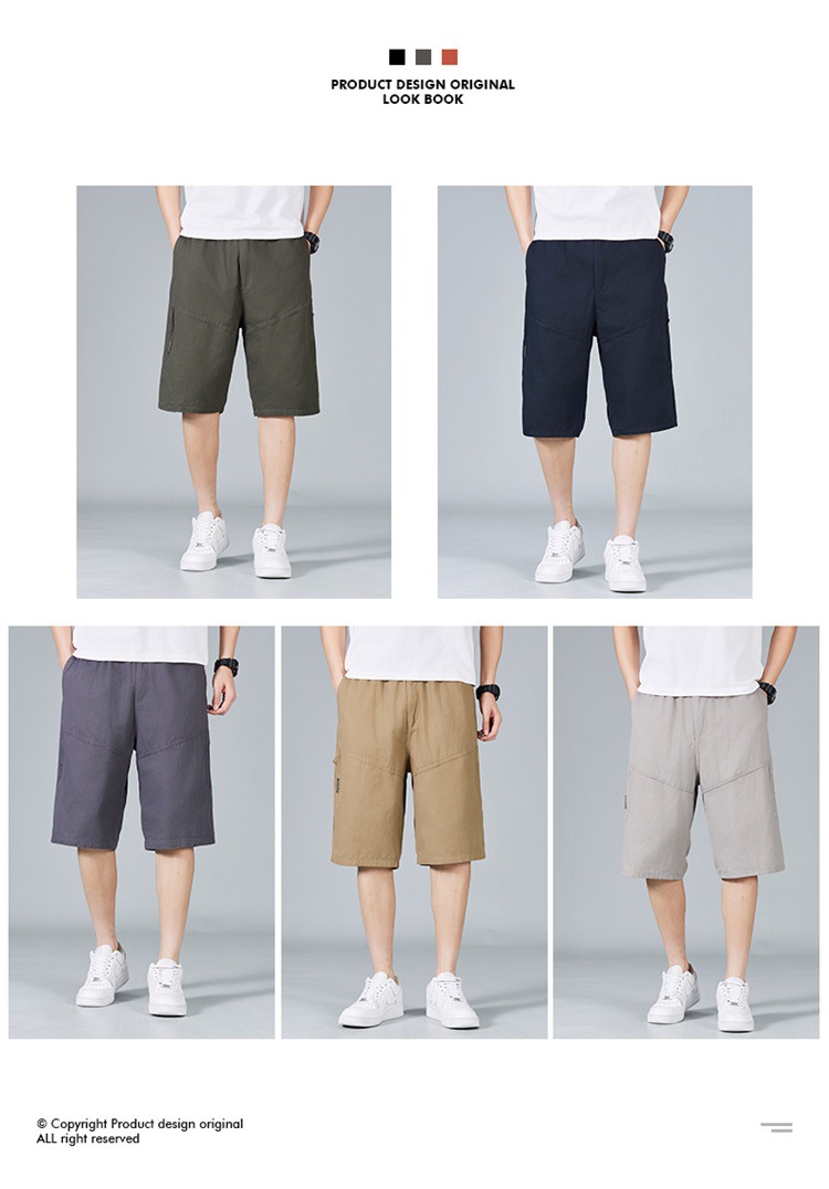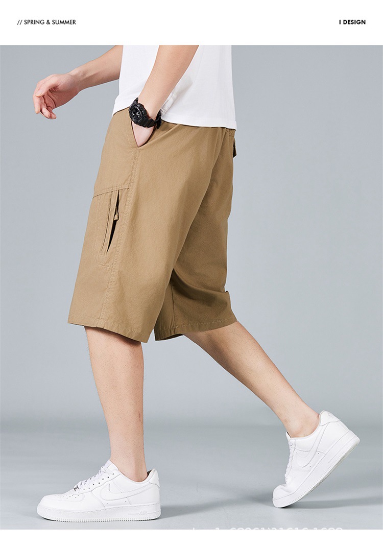 조로칠데 카프리 바지 남자 여름 얇은 반바지 순수 코튼 중간 길이 바지 외부 착용 플러스 사이즈 작업복 바지 캐주얼 루즈스토어 가기