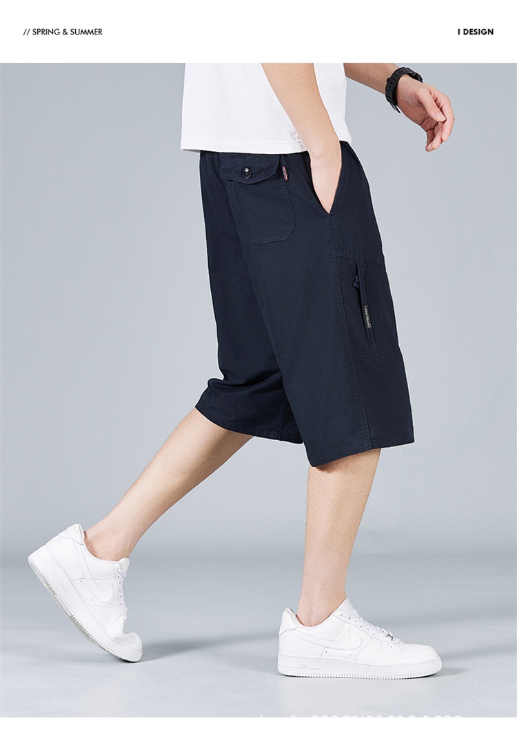 조로칠데 카프리 바지 남자 여름 얇은 반바지 순수 코튼 중간 길이 바지 외부 착용 플러스 사이즈 작업복 바지 캐주얼 루즈