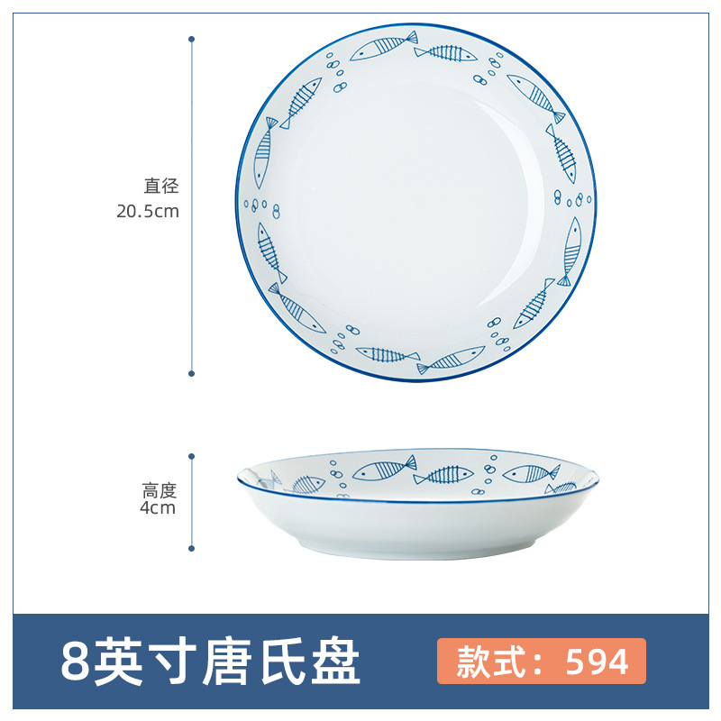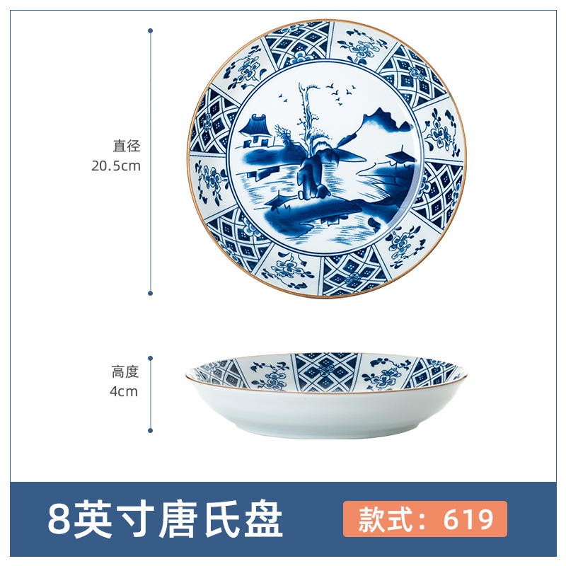 Jingdezhen 세라믹 플레이트 일본 underglaze 컬러 접시 8 인치 깊은 접시 수프 접시 원형 접시 접시 가정용 깊은 접시스토어 가기