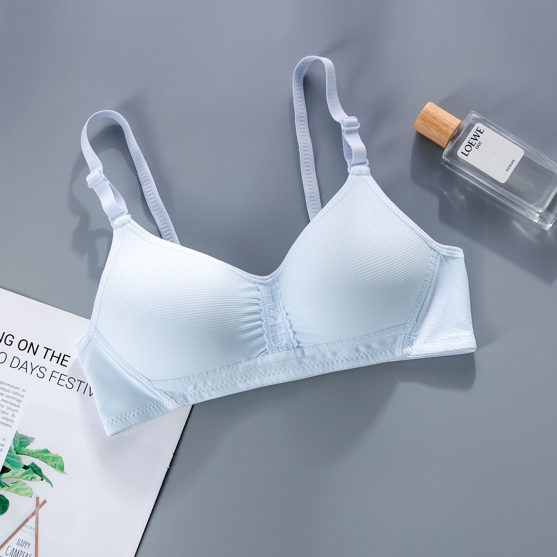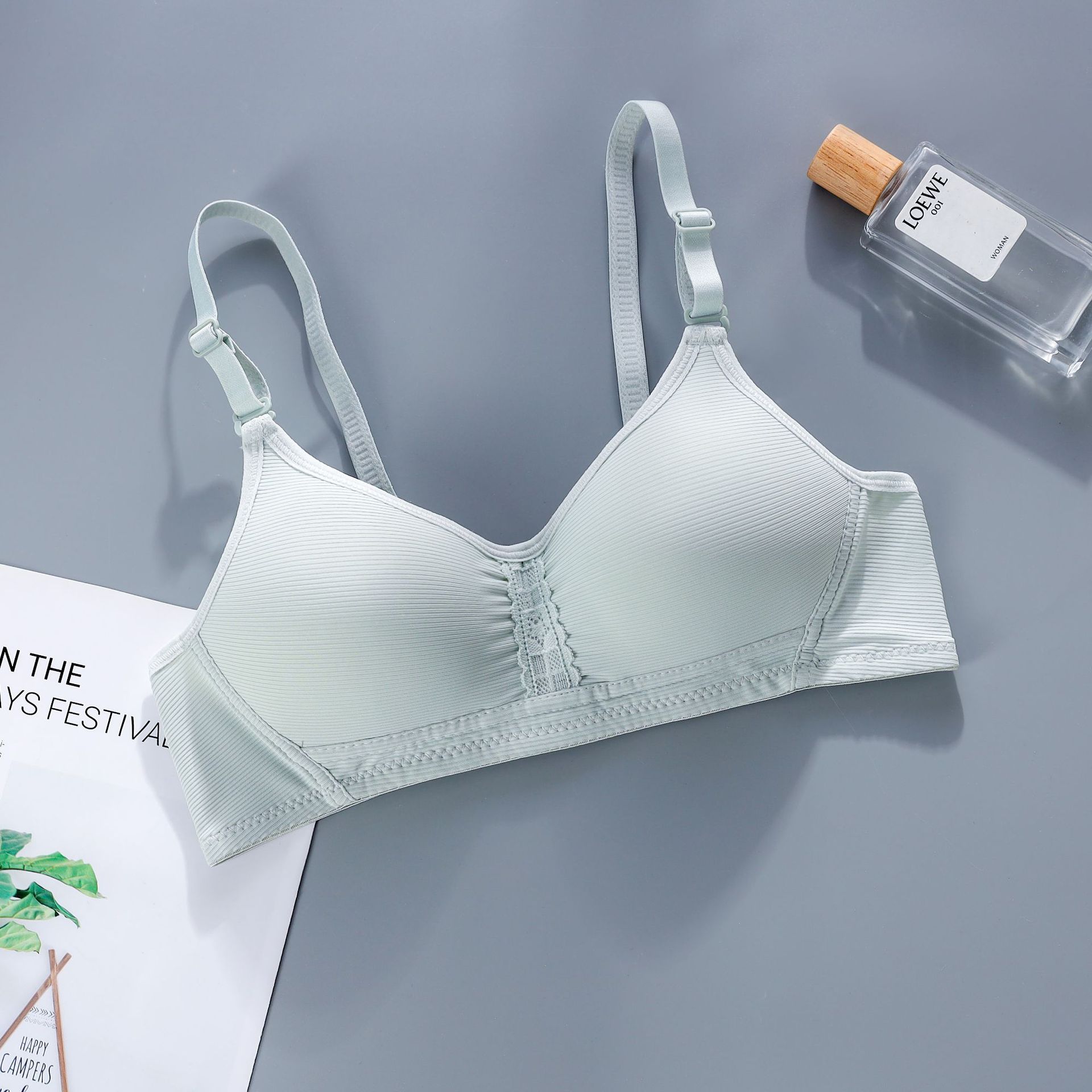 本学生款无钢圈条纹内衣,有黑/蓝/绿/白/肤五个颜色,32-38码AB通用杯,可拆卸两用肩带,后三排扣设计,仅有单件。