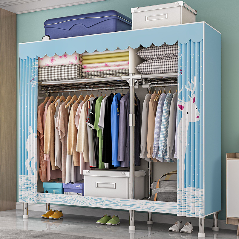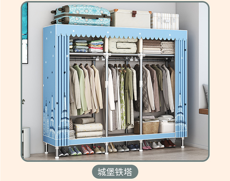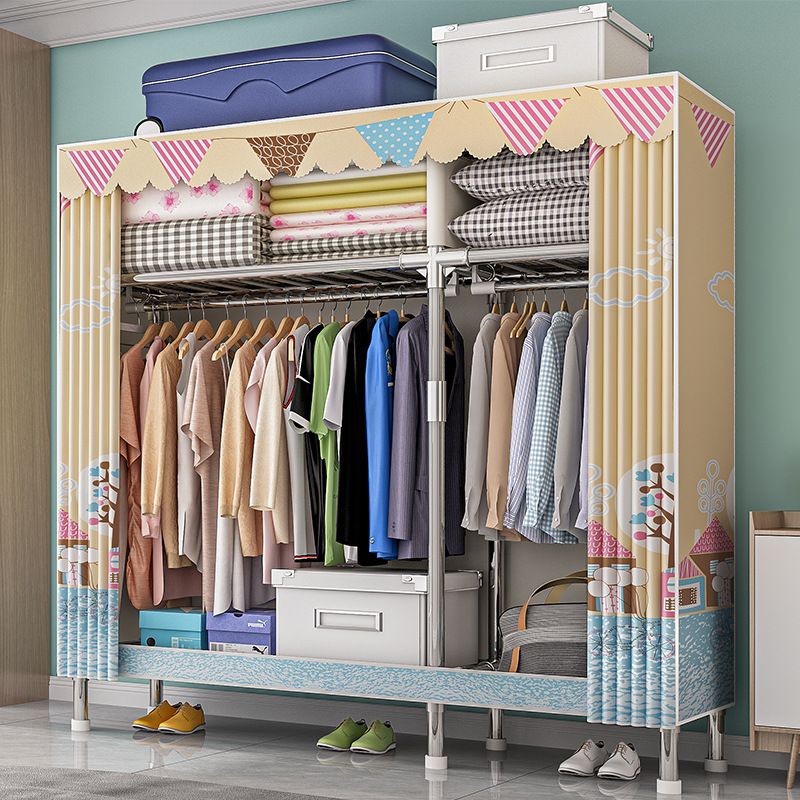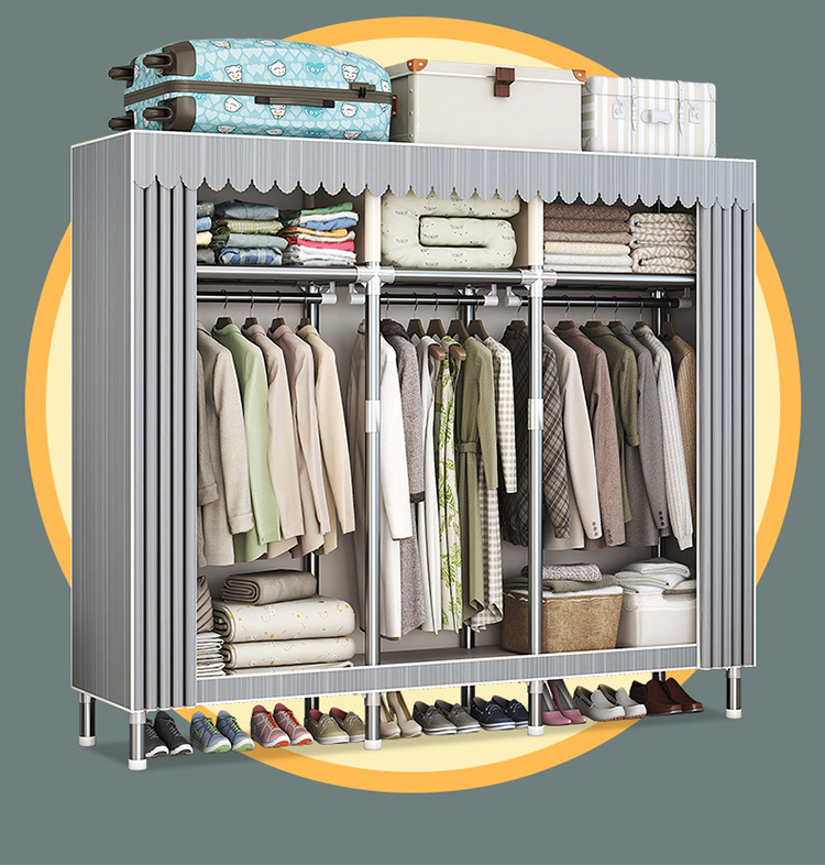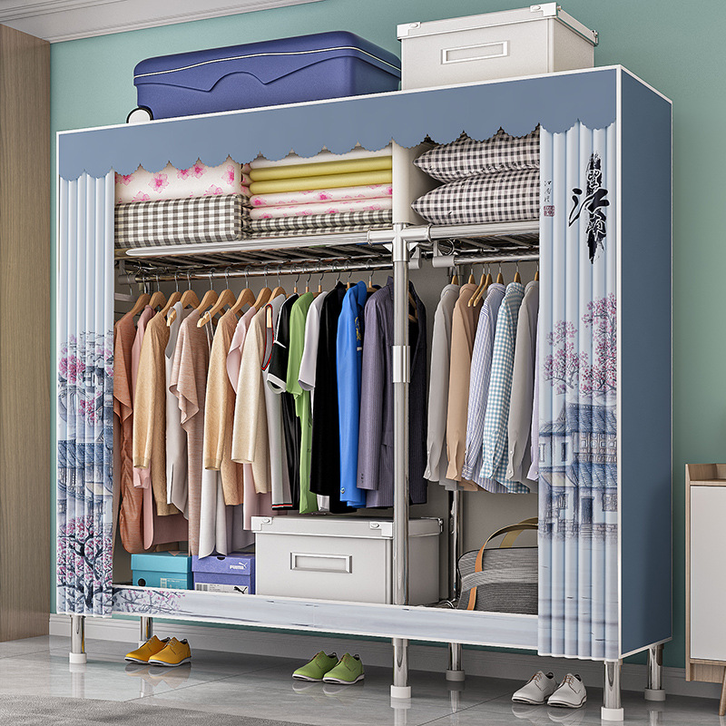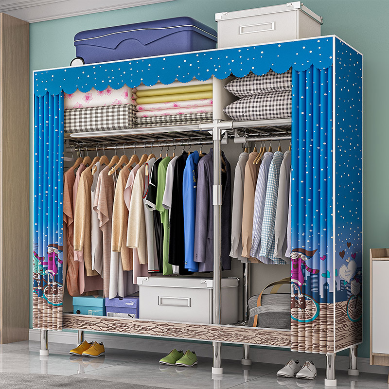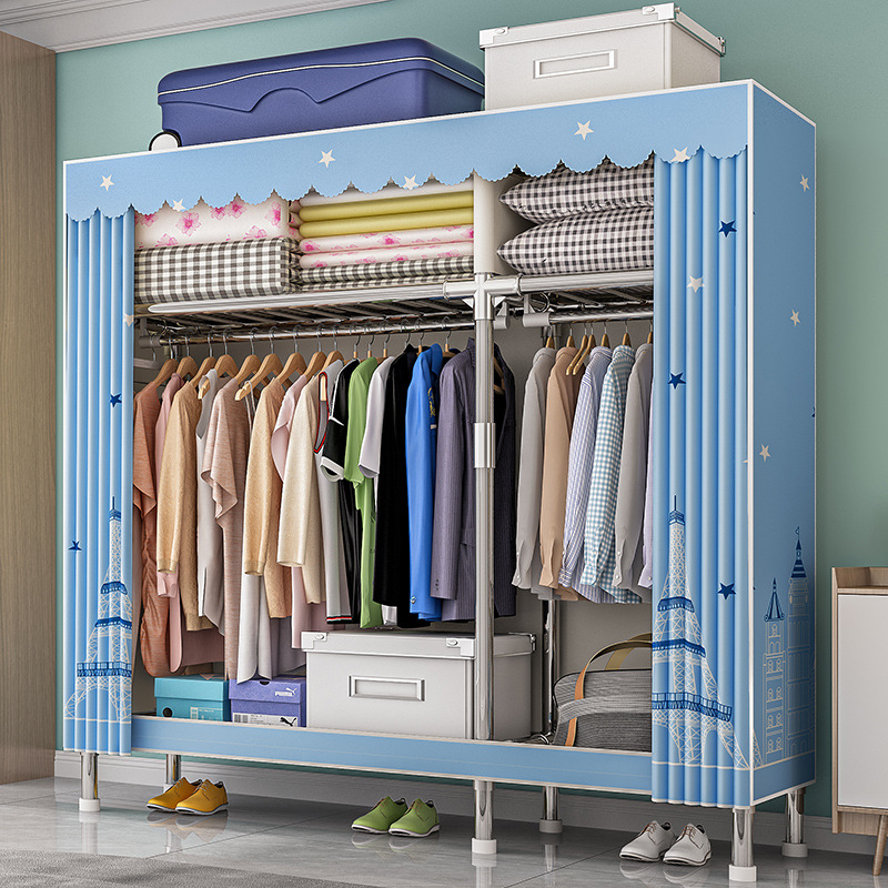 가구 임대실 침실 조립 옷장 교수형 옷 보관 및 배열 강철 프레임 대담한 간단한 옥스포드 천 옷장스토어 가기