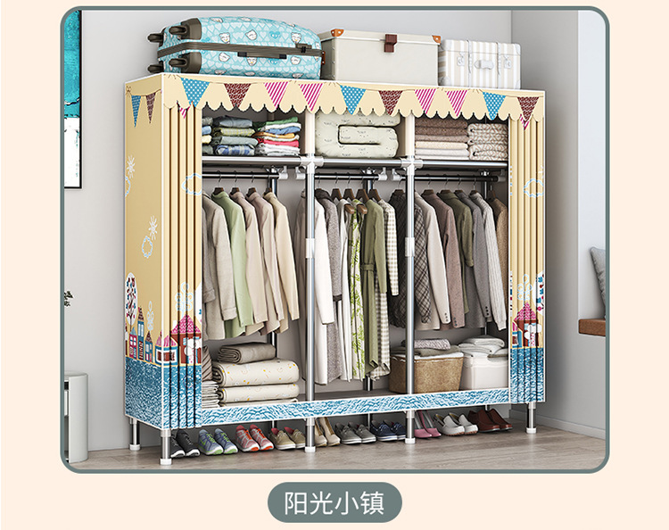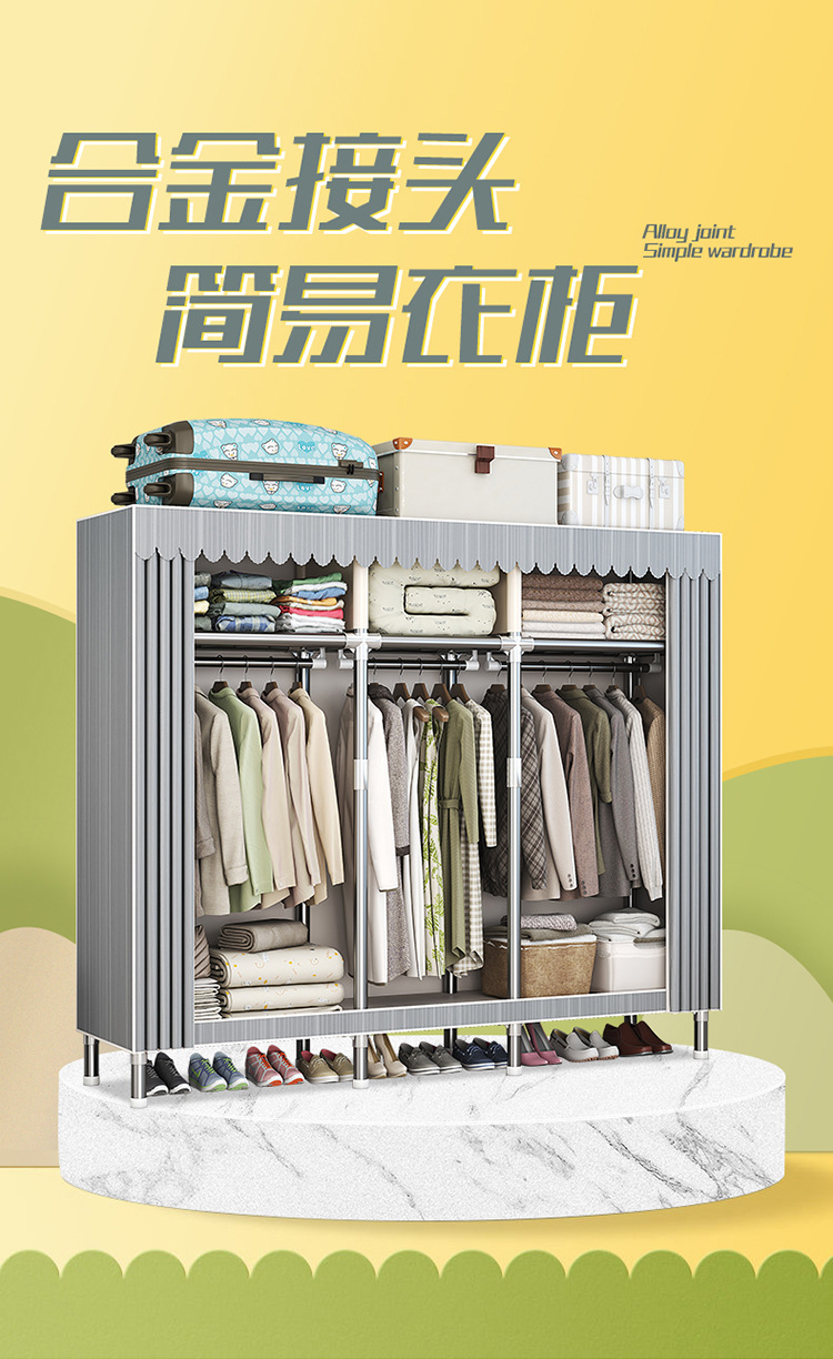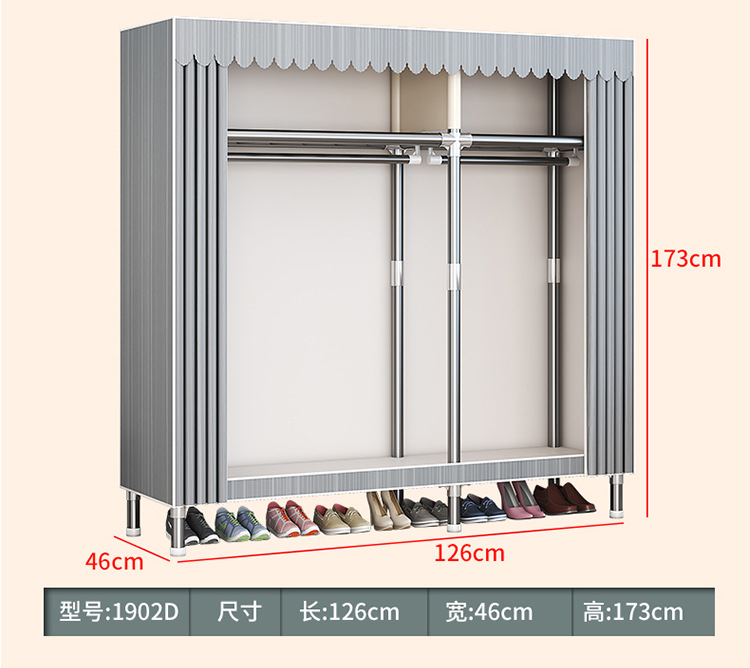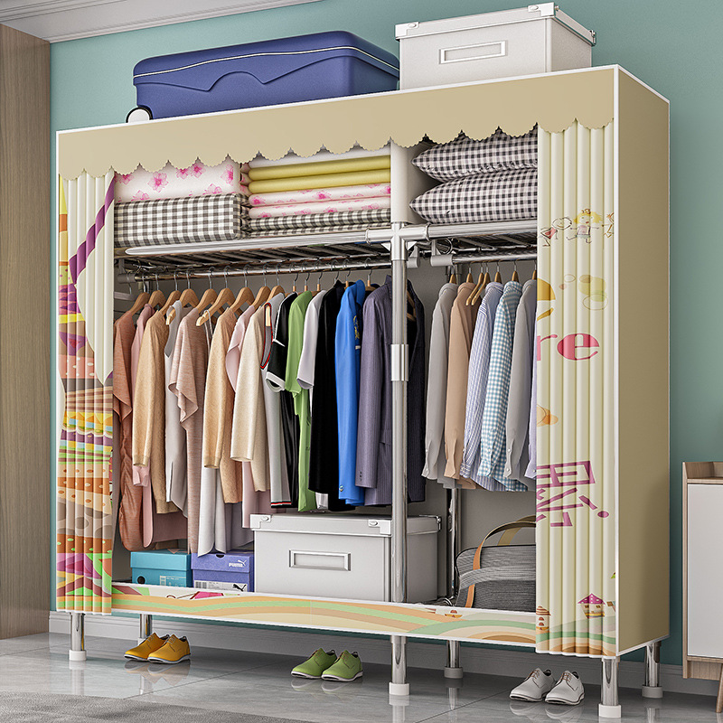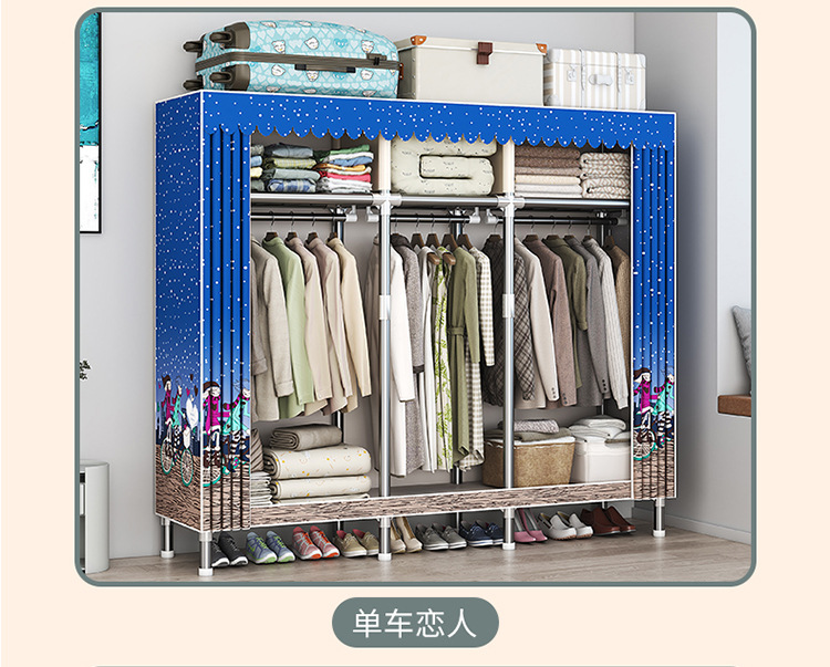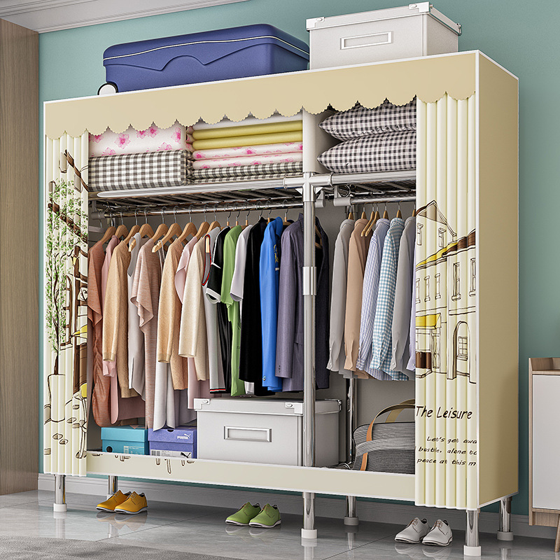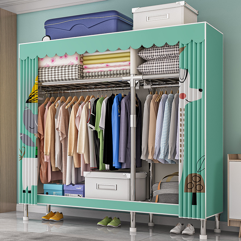 가구 임대실 침실 조립 옷장 교수형 옷 보관 및 배열 강철 프레임 대담한 간단한 옥스포드 천 옷장스토어 가기