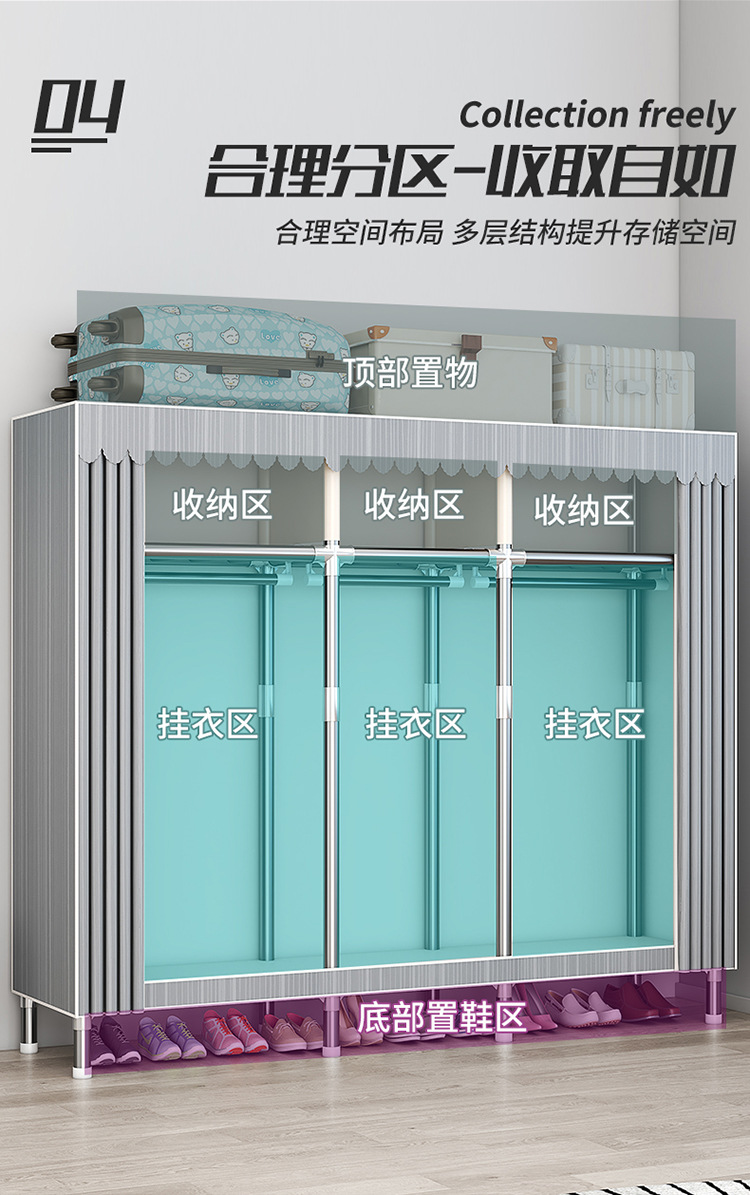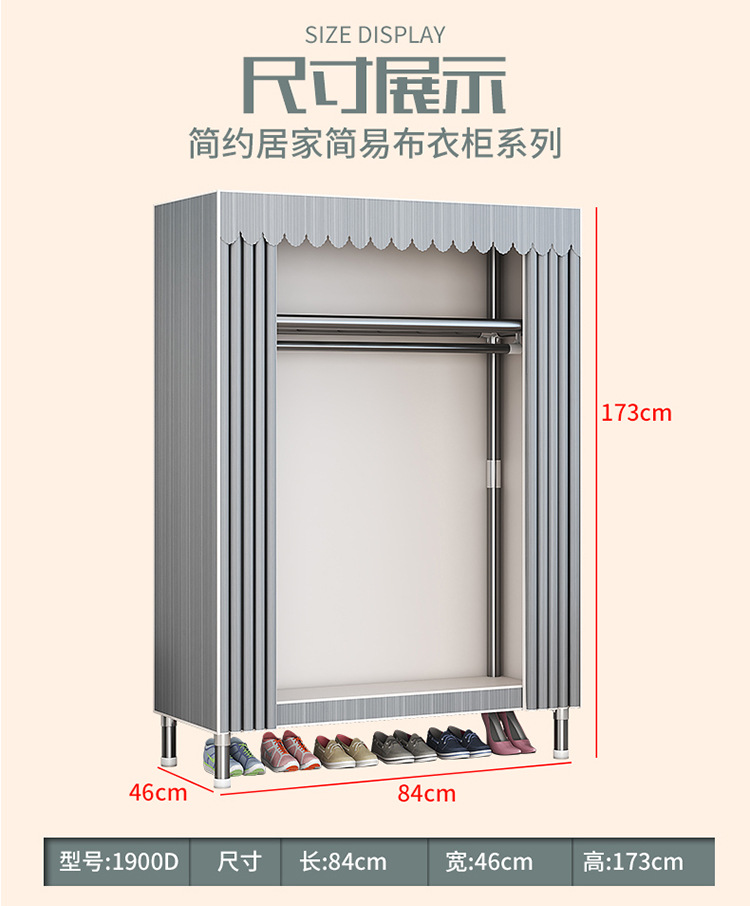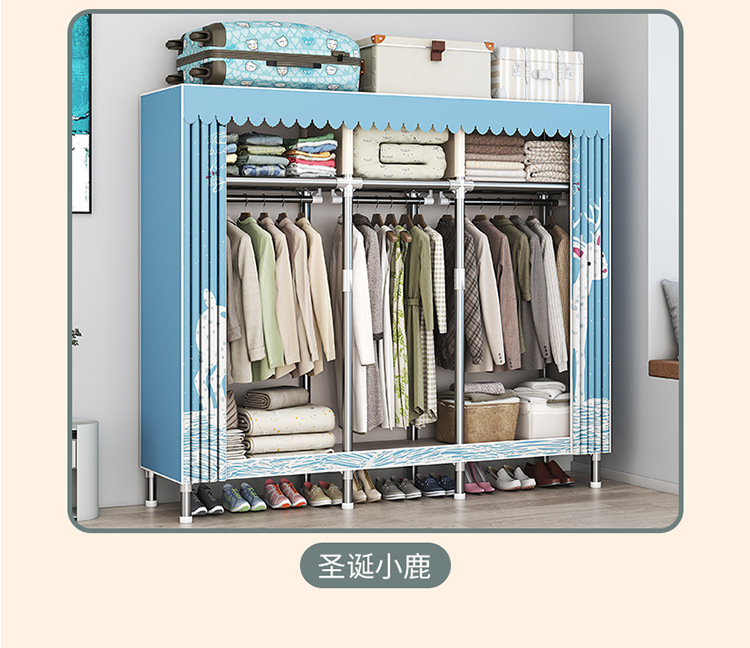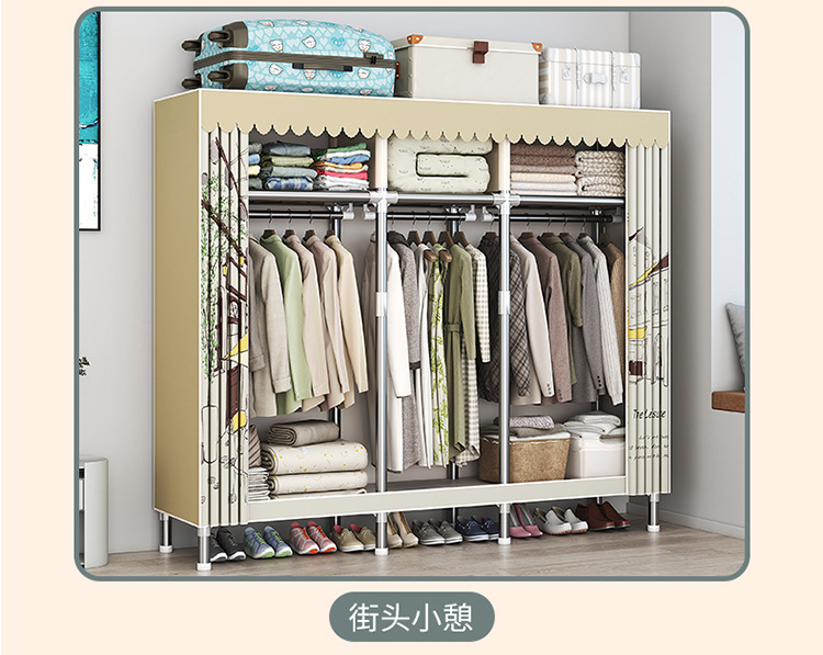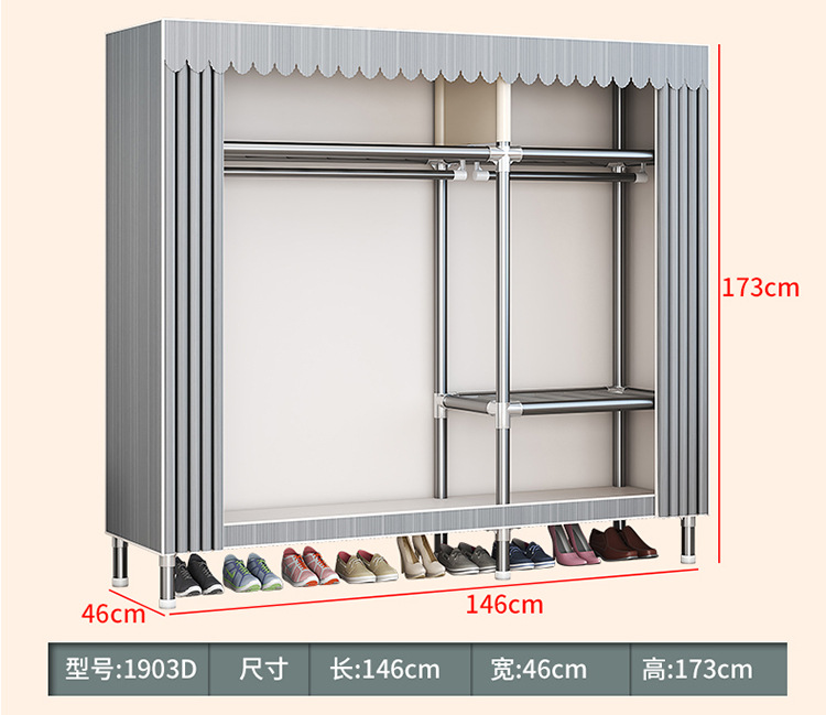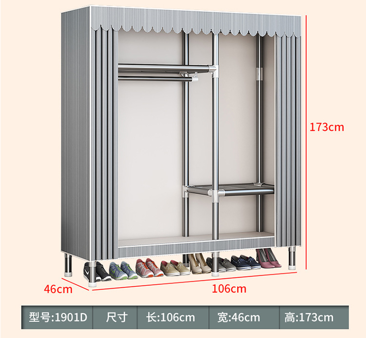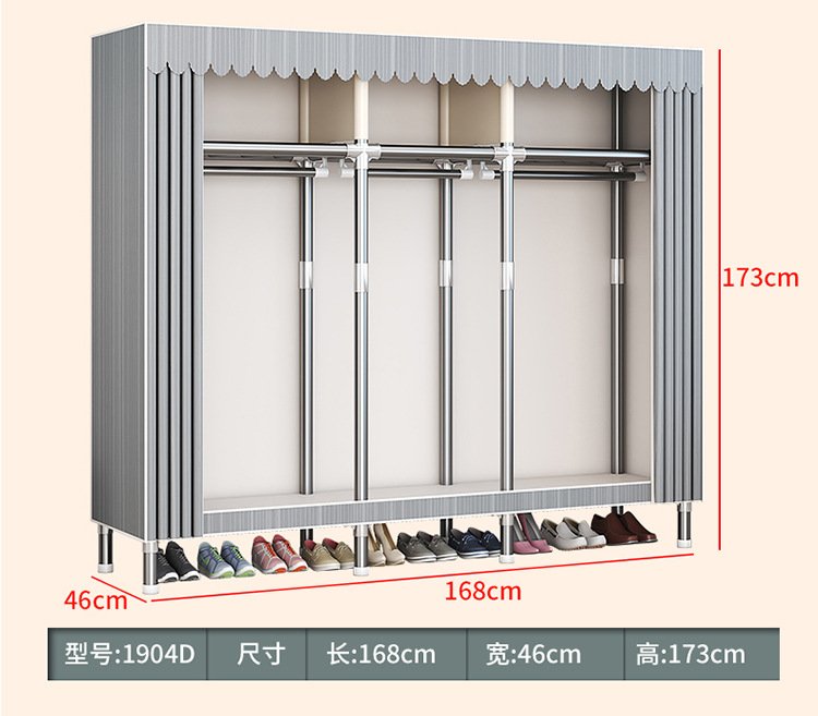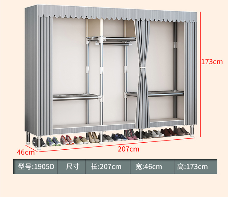 가구 임대실 침실 조립 옷장 교수형 옷 보관 및 배열 강철 프레임 대담한 간단한 옥스포드 천 옷장스토어 가기