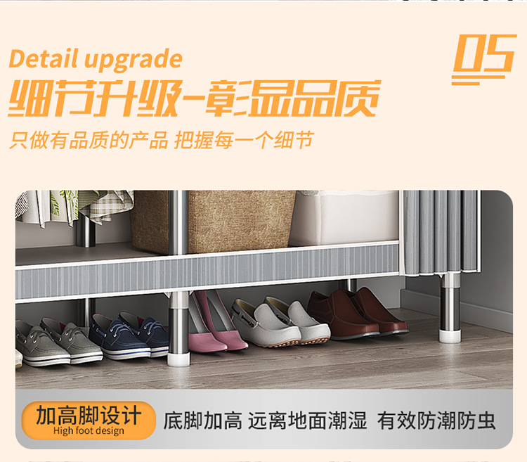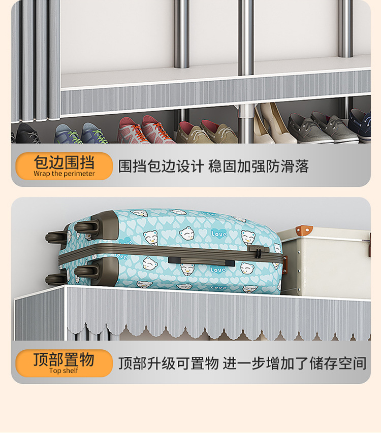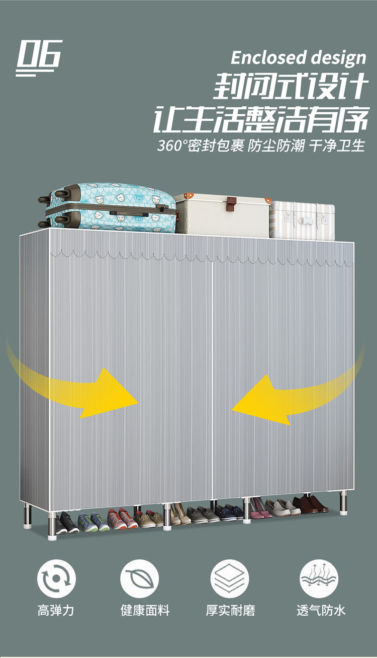 가구 임대실 침실 조립 옷장 교수형 옷 보관 및 배열 강철 프레임 대담한 간단한 옥스포드 천 옷장