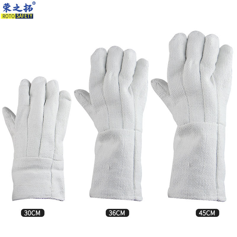 소방 및 고온 단열 산업용 석면 장갑 용 금속 유리로 만든 긴 다섯 손가락 내화 장갑