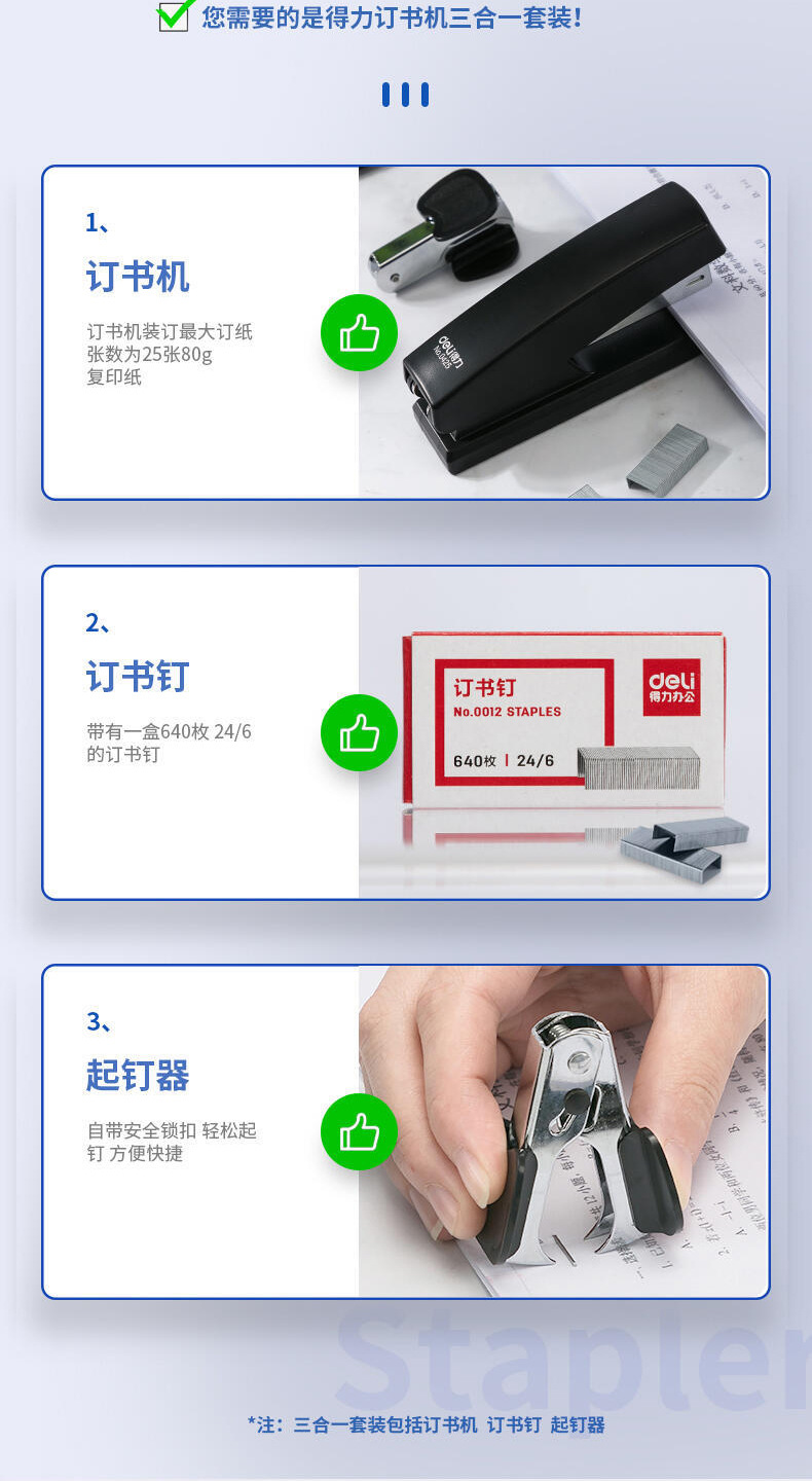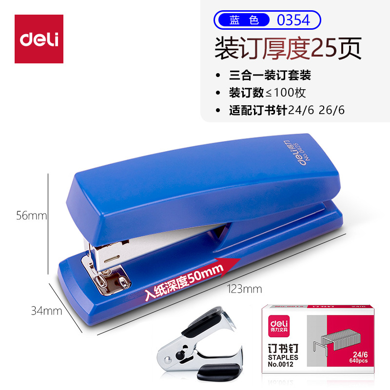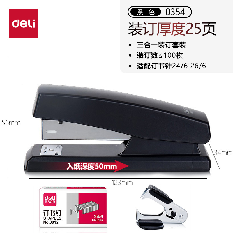 델리 세트 0354 노동 절약 스테이플러 세트 학생 사무실 스테이플러 예약 바늘 번호 12스토어 가기