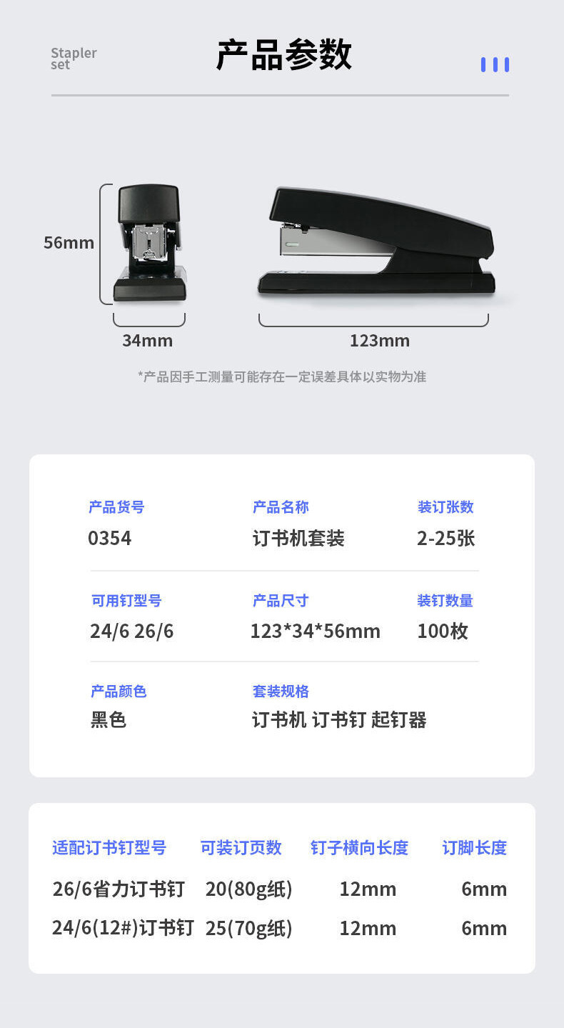 델리 세트 0354 노동 절약 스테이플러 세트 학생 사무실 스테이플러 예약 바늘 번호 12