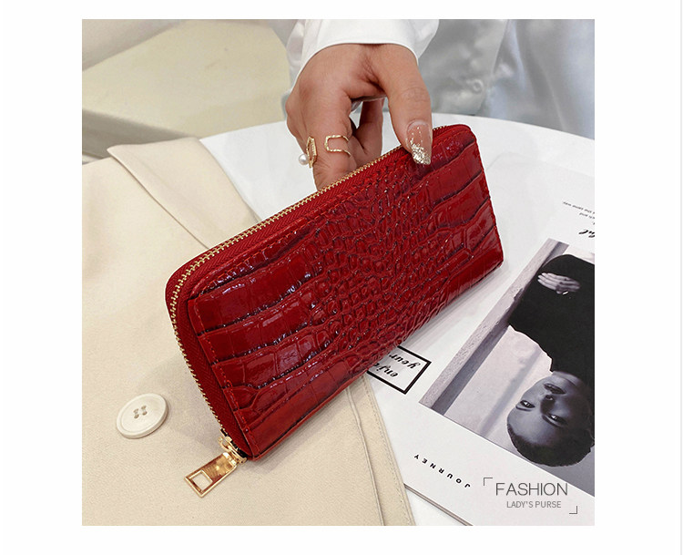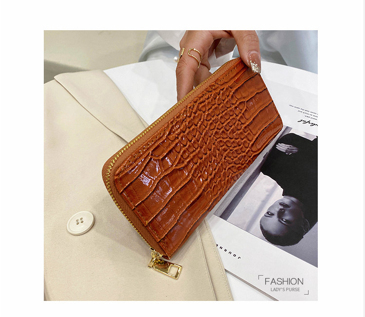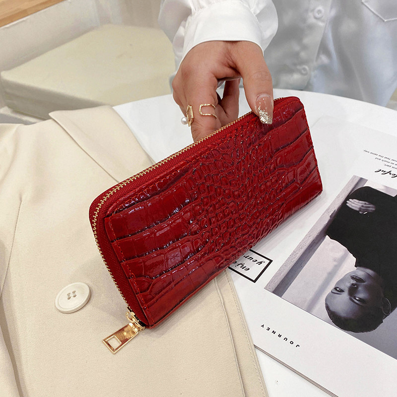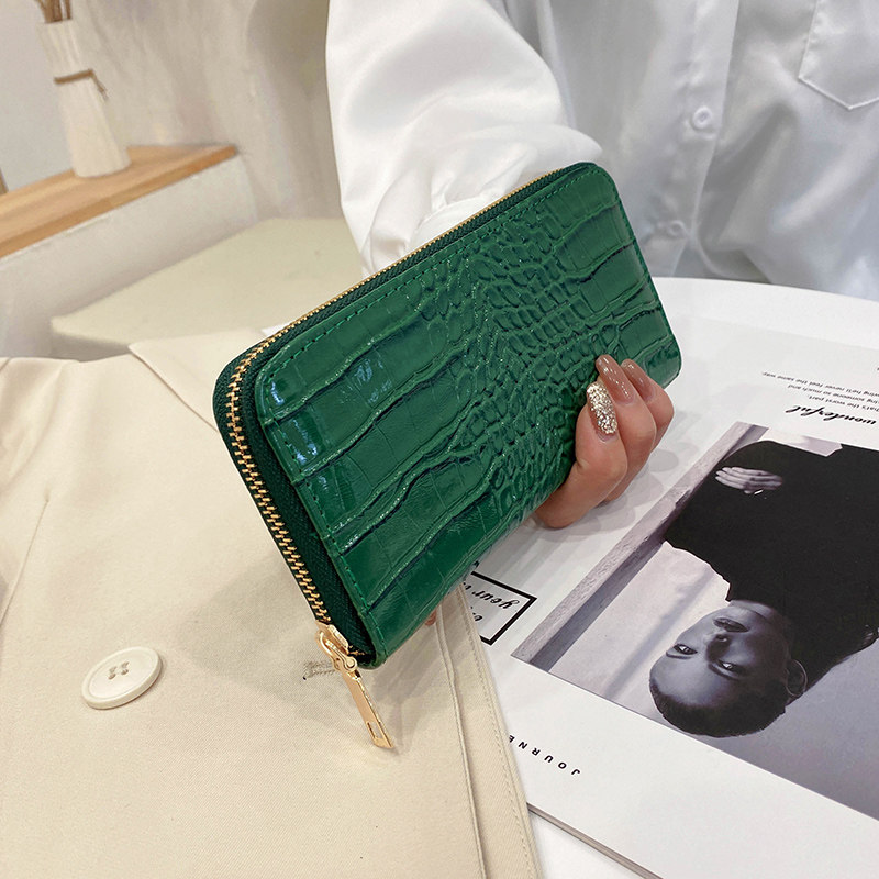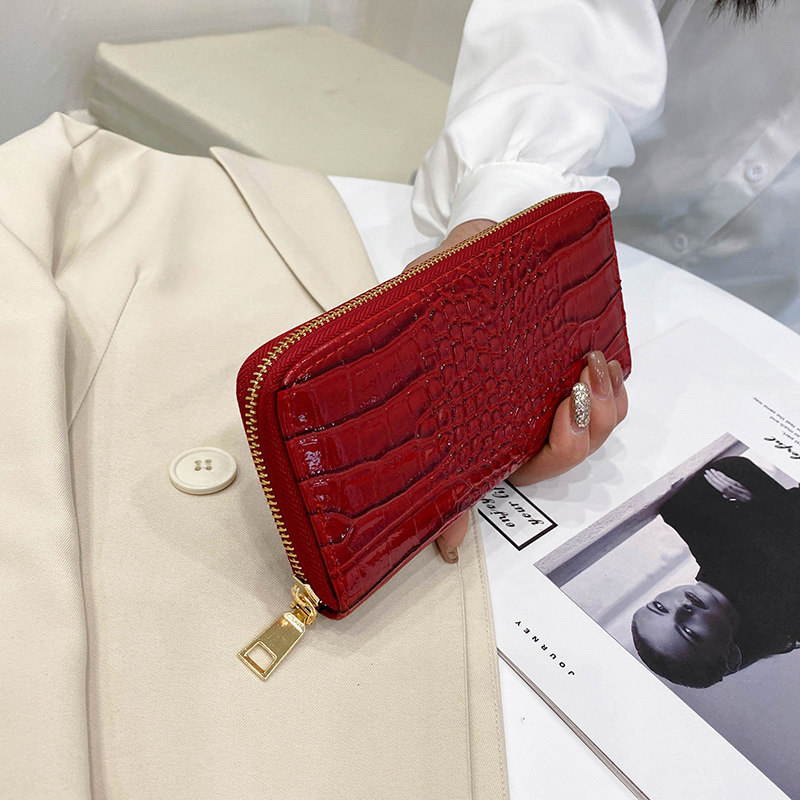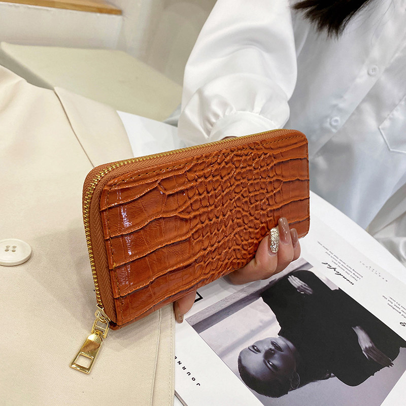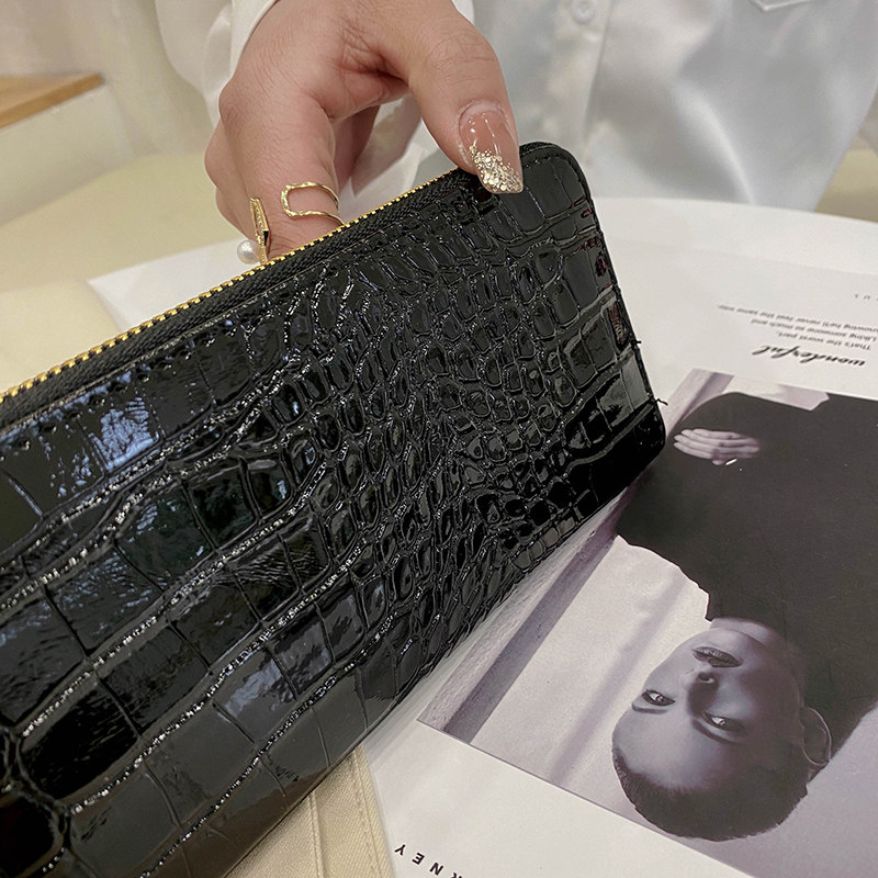 패션 악어 패턴 지갑 새로운 스타일 2025 긴 클러치 백 카드 홀더 지갑 지갑 대용량 멀티 카드 슬롯 여성용 가방