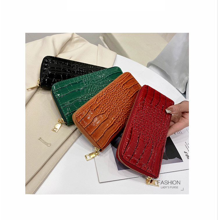 패션 악어 패턴 지갑 새로운 스타일 2025 긴 클러치 백 카드 홀더 지갑 지갑 대용량 멀티 카드 슬롯 여성용 가방스토어 가기