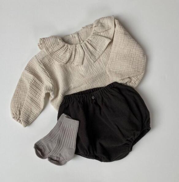 2021 in 일본과 한국 봄 가을 어린이 면 및 린넨 프릴 베이스 캐주얼 아우터 모리 스타일 모든 매치 탑 셔츠