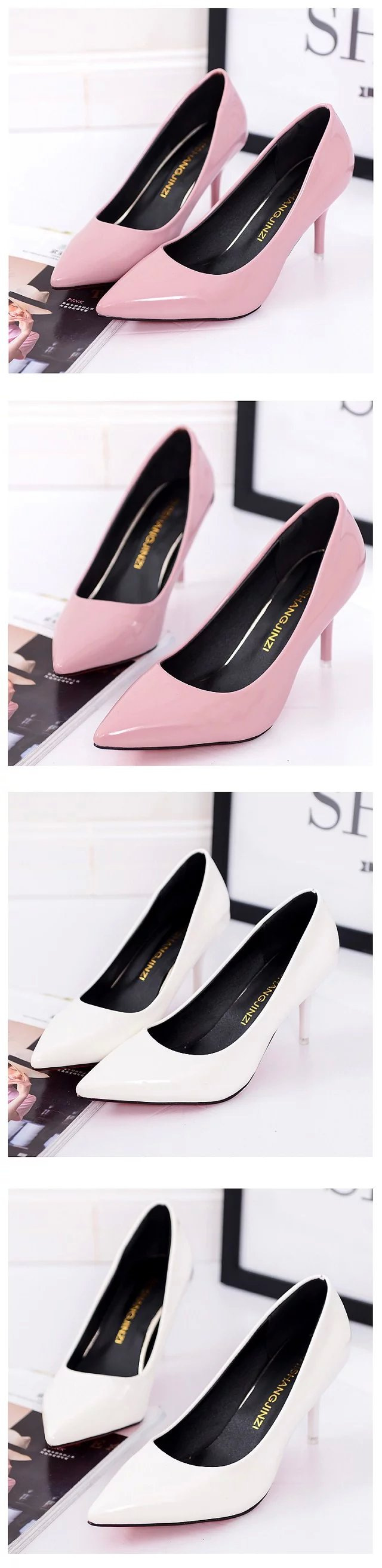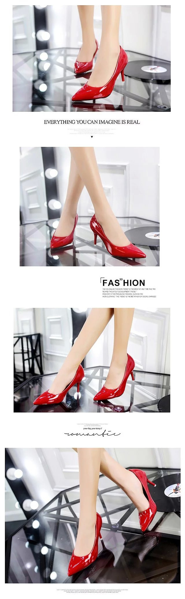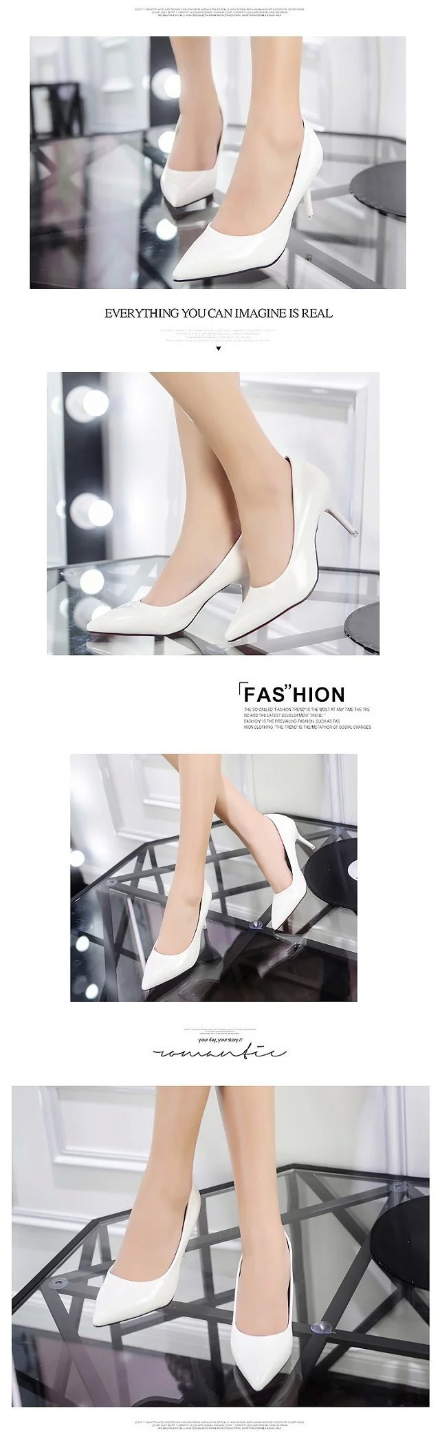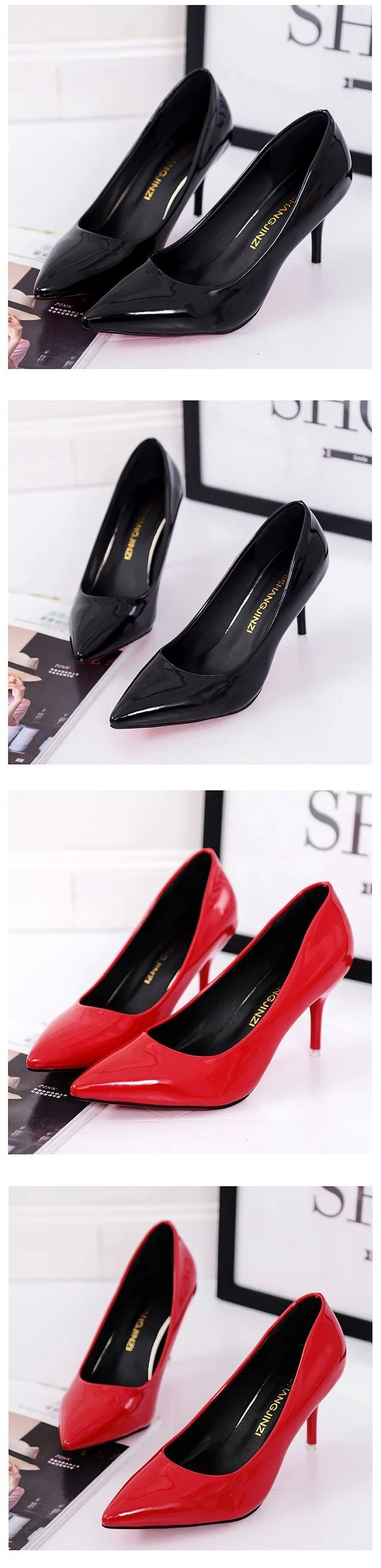 유럽 역 봄 새로운 특허 가죽 발 뒤꿈치 뾰족한 얇은 뒤꿈치 여성용 단층 신발 얕은 입 여성 신발
