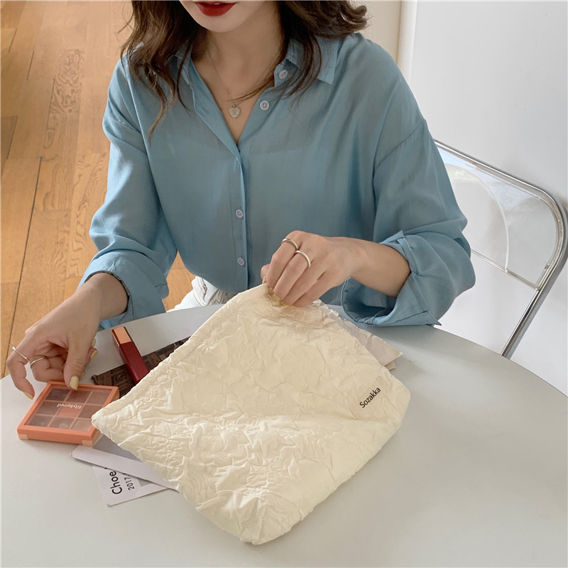 17192 프랑스 스타일 우아한 양각 화장품 가방 인스 타 그램 스타일 일본과 한국 스타일 립스틱 교환 보관 가방 휴대 전화 클러치 백