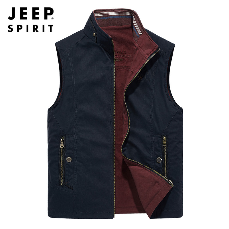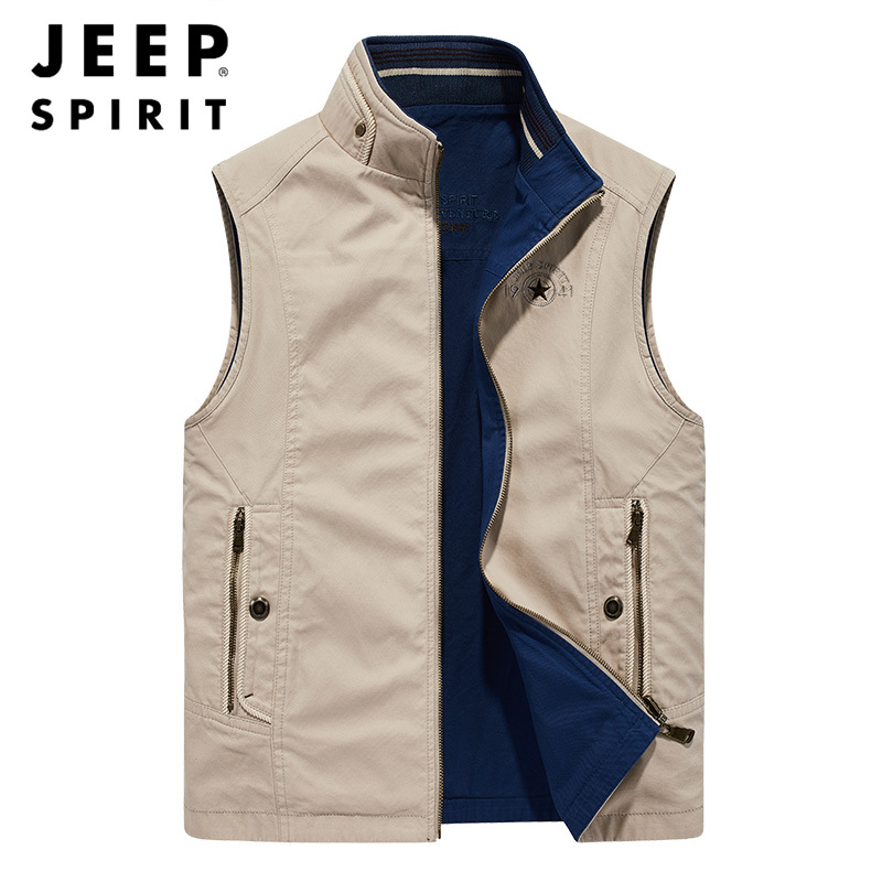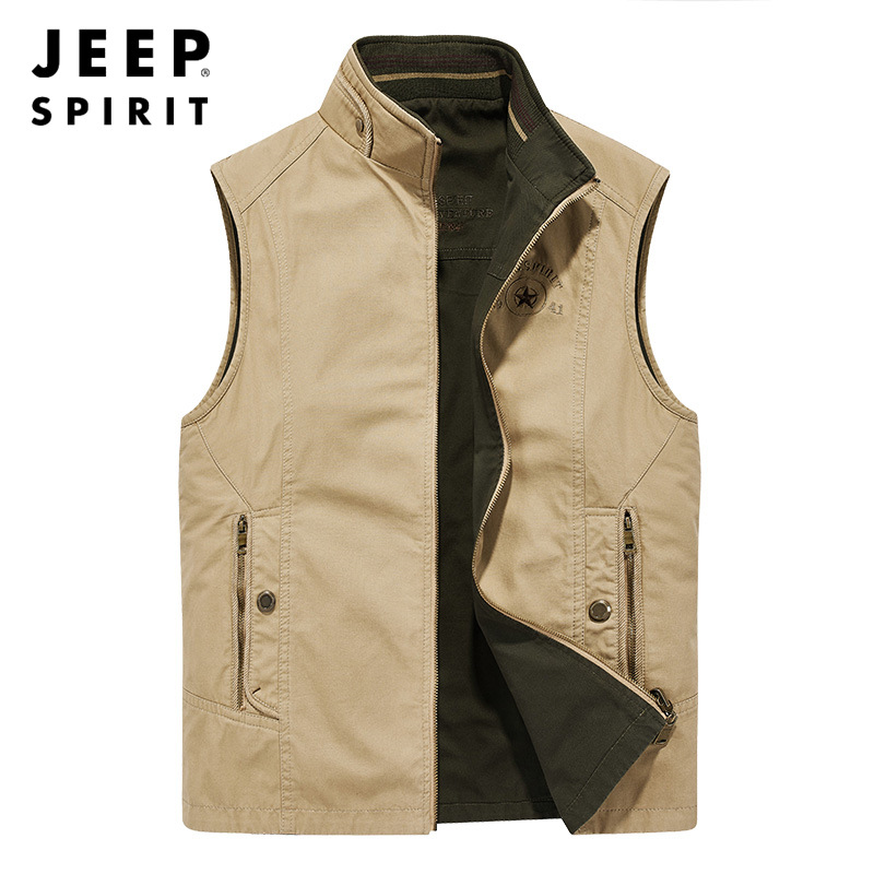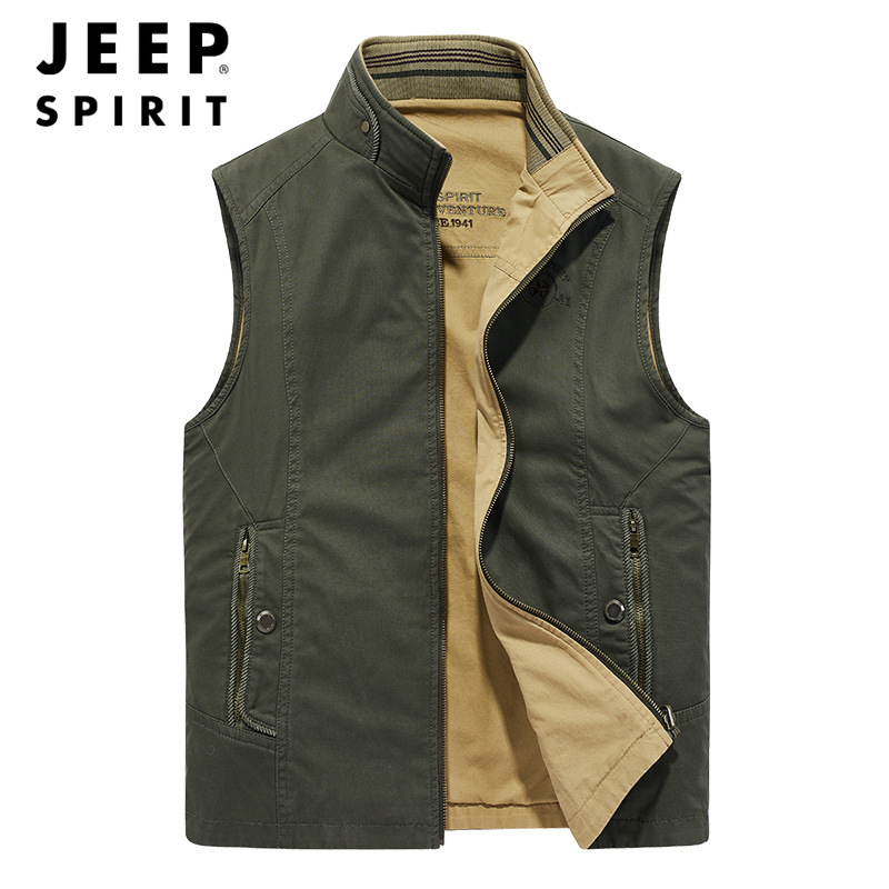 JEEP SPIRIT 캐주얼 남성 조끼 사진 낚시 양면 스탠드 칼라 면 재킷 조끼 9838