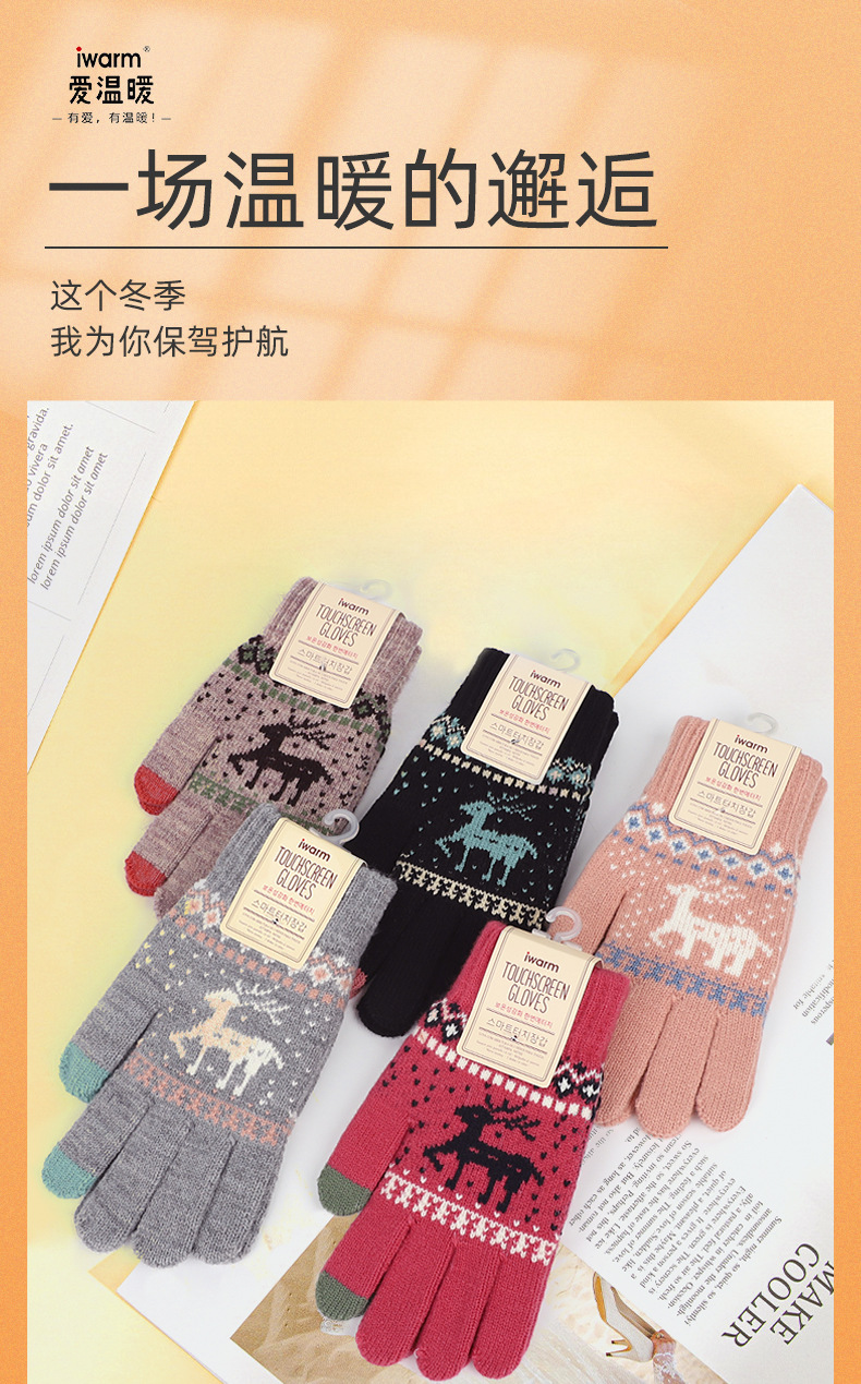 Iwarm 사랑 따뜻한 크리스마스 새끼 사슴 울과 벨벳 장갑 커플 가을과 겨울 니트 따뜻한 터치 스크린 장갑 여성용스토어 가기