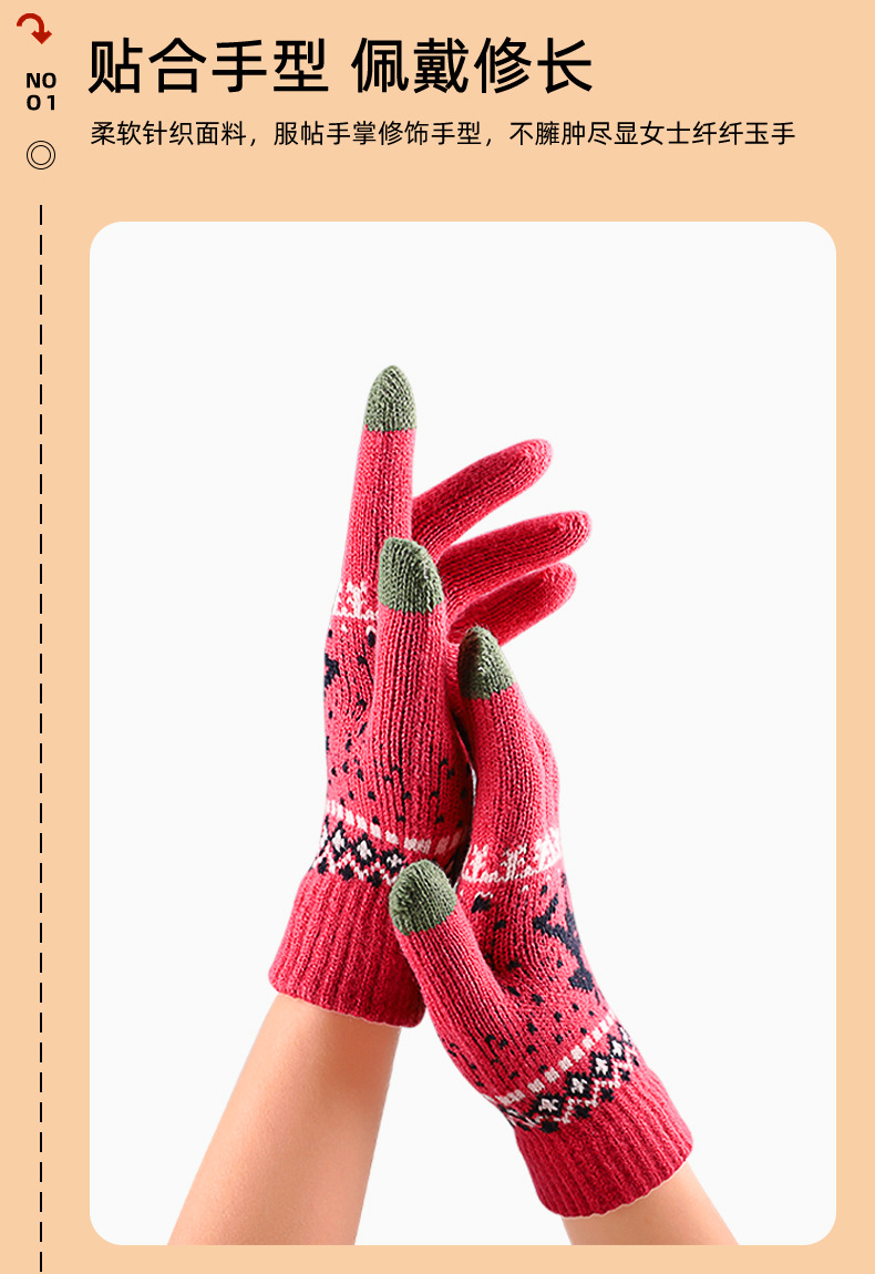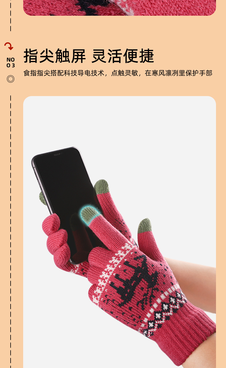 Iwarm 사랑 따뜻한 크리스마스 새끼 사슴 울과 벨벳 장갑 커플 가을과 겨울 니트 따뜻한 터치 스크린 장갑 여성용