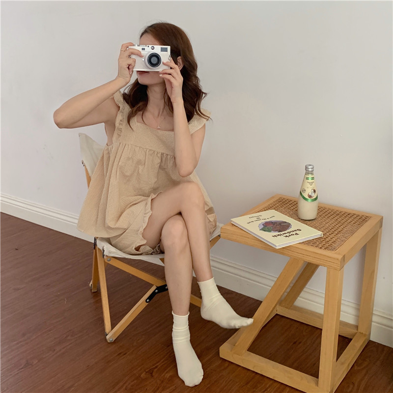 한국 in 여성의 여름 신상품 한국 스타일 신선하고 달콤한 체크 스트랩 세트 파자마 홈 의류 여성용스토어 가기