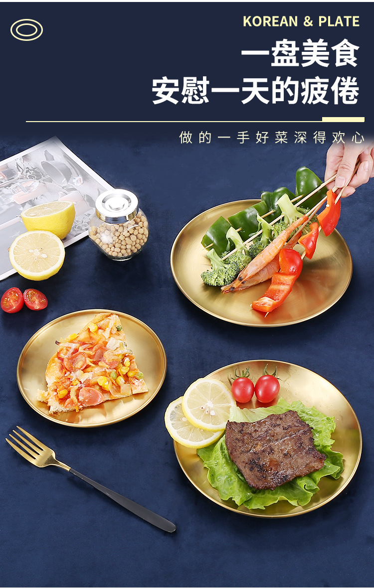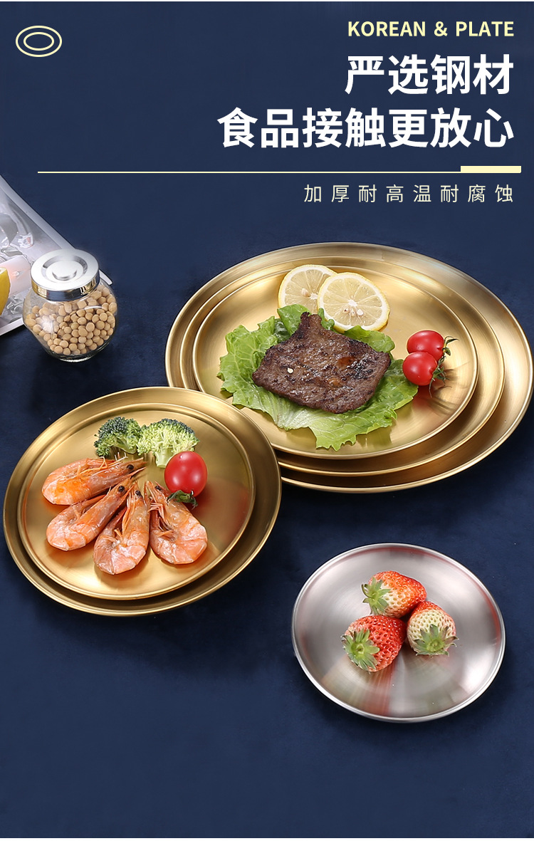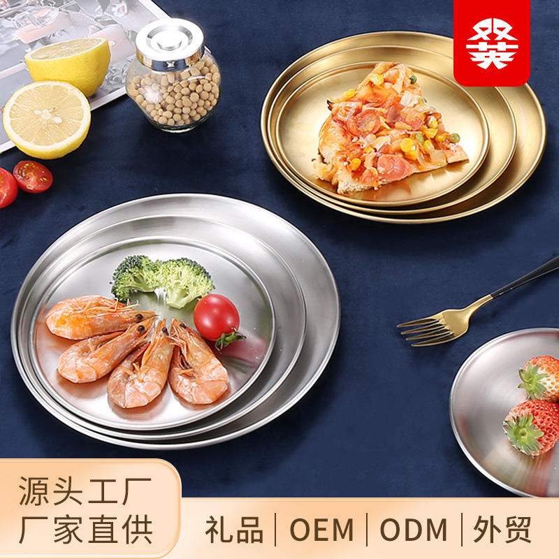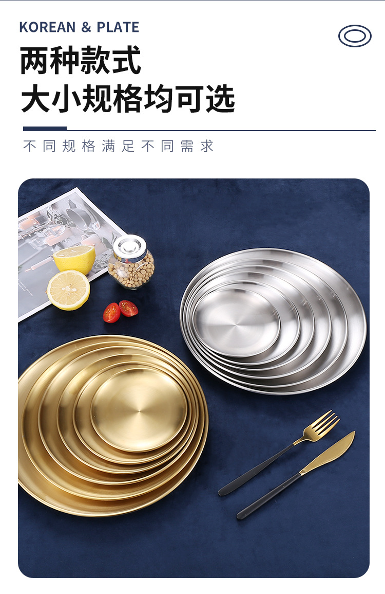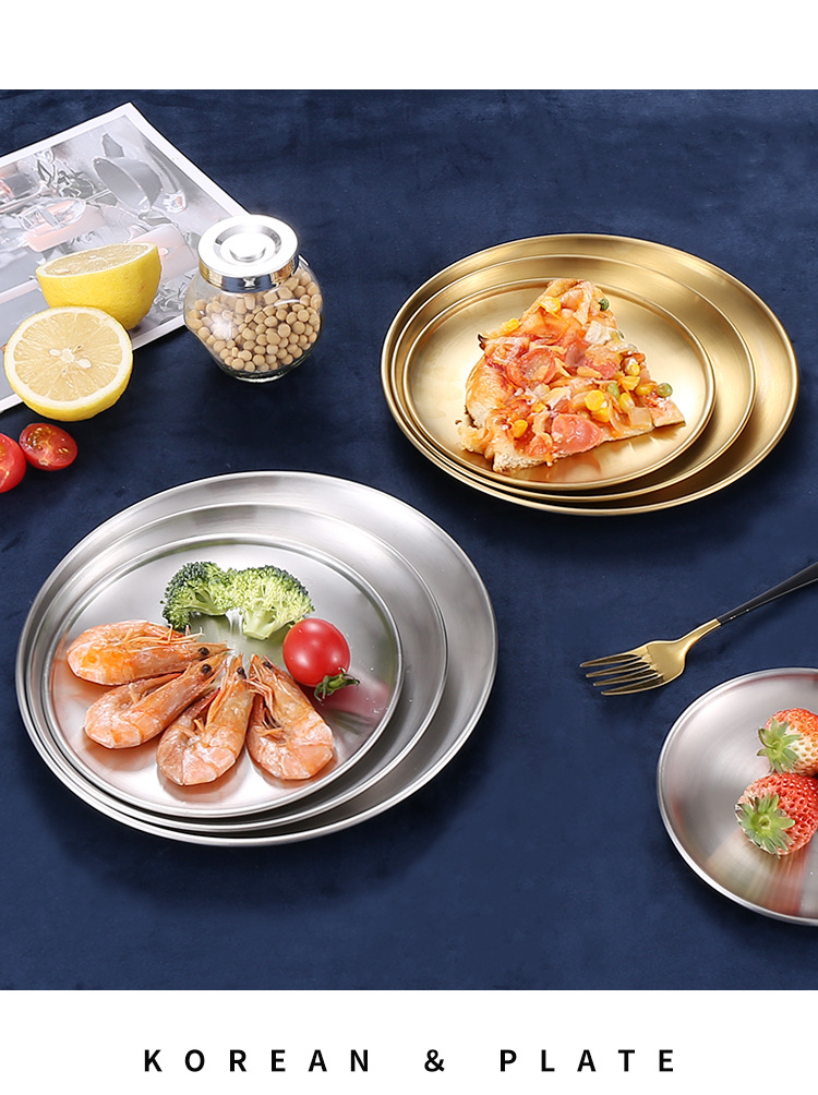 한국식 스테인리스 원형 접시, 과일 디저트 접시, 양식 접시, 서빙 접시, 고급 가정용 접시