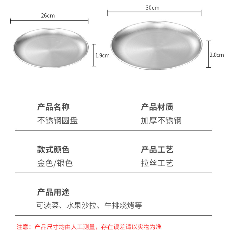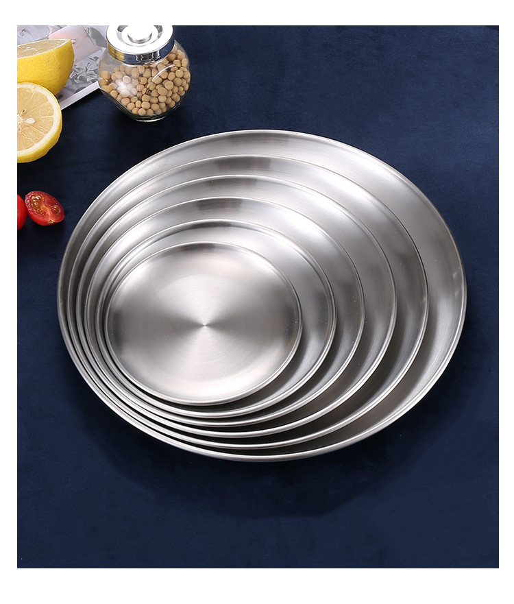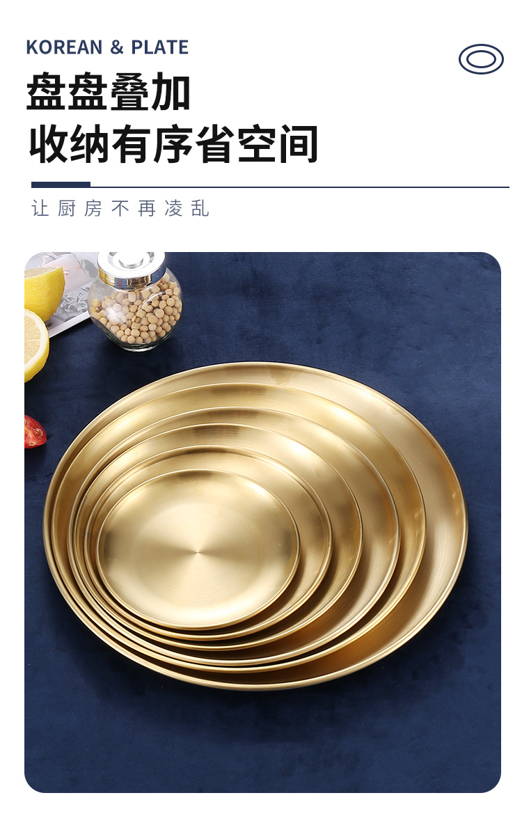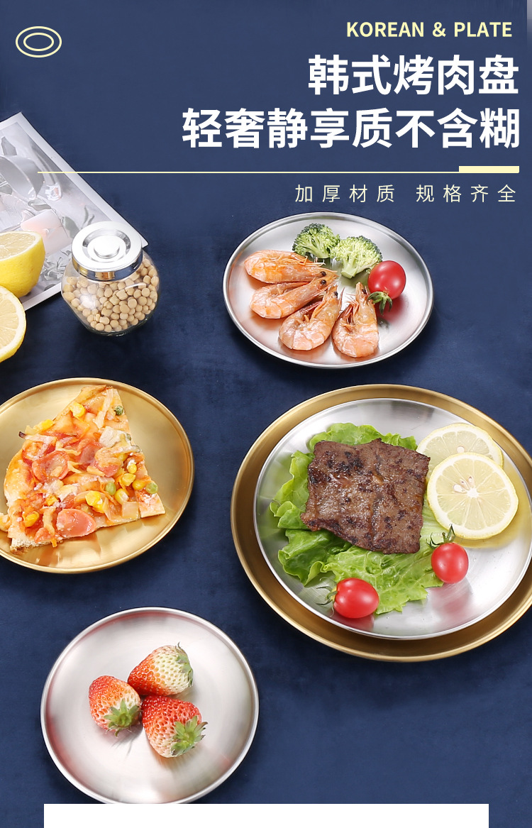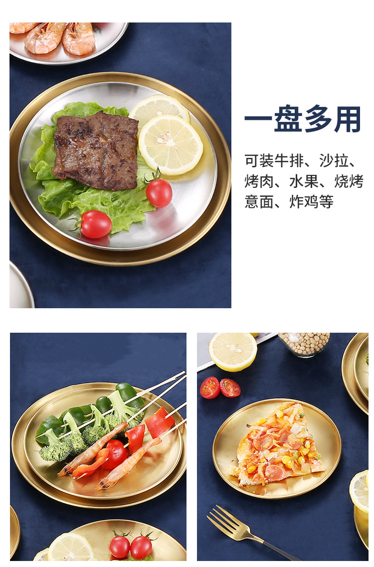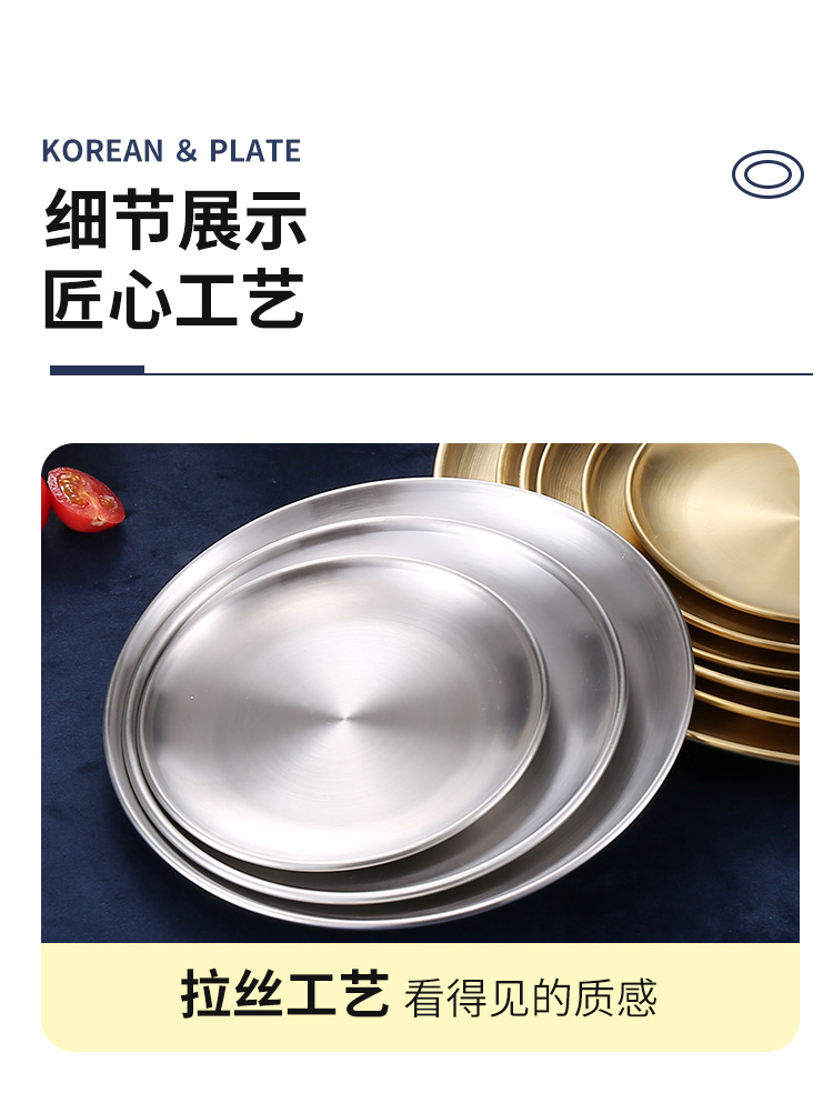 한국식 스테인리스 원형 접시, 과일 디저트 접시, 양식 접시, 서빙 접시, 고급 가정용 접시