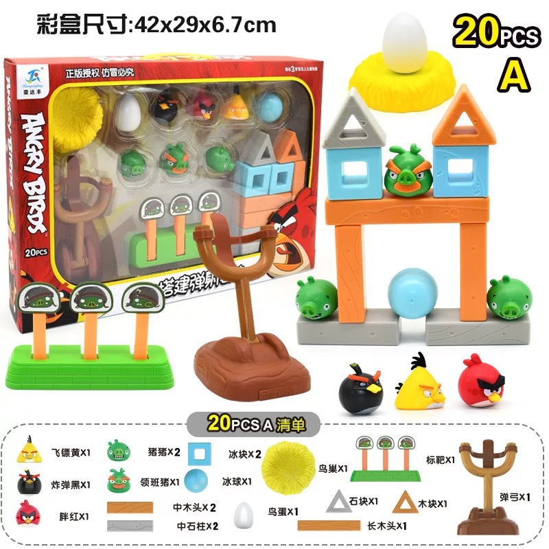 정품 앵그리 버드 세트 어린이 장면 빌딩 블록 장난감 새총 투석기 장난감 만화 애니메이션 인형
