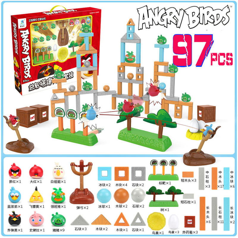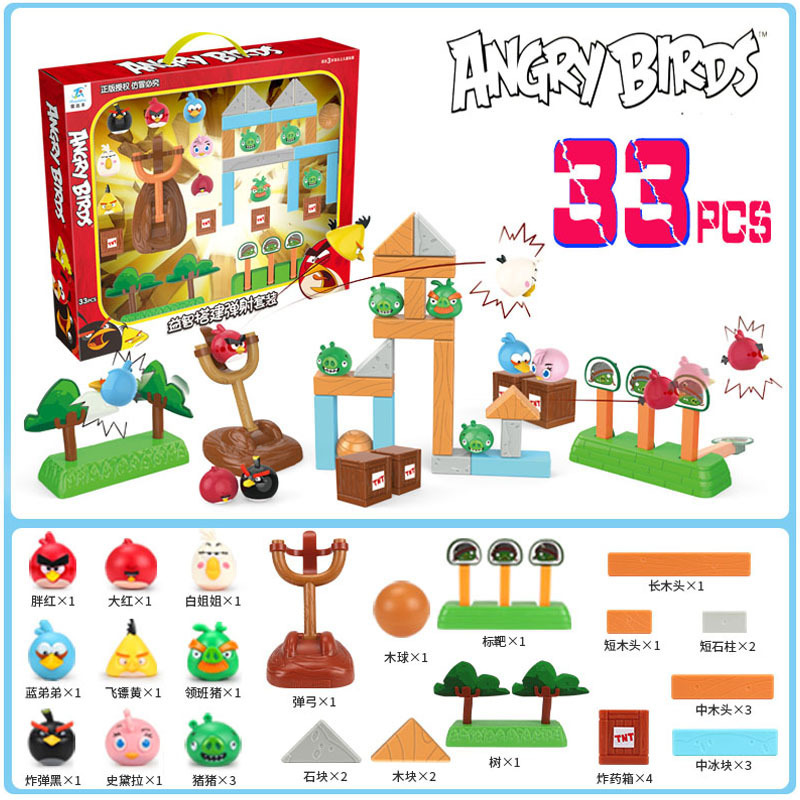 정품 앵그리 버드 세트 어린이 장면 빌딩 블록 장난감 새총 투석기 장난감 만화 애니메이션 인형스토어 가기