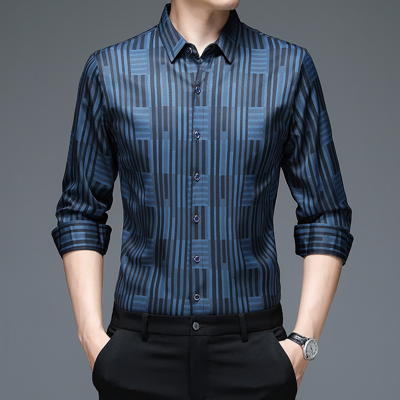 긴팔 남성 셔츠 2023 봄 가을 비즈니스 캐주얼 스트라이프 인치 셔츠 인치 의류 개성 옷깃 트렌디 한 남성 탑스토어 가기