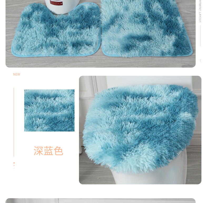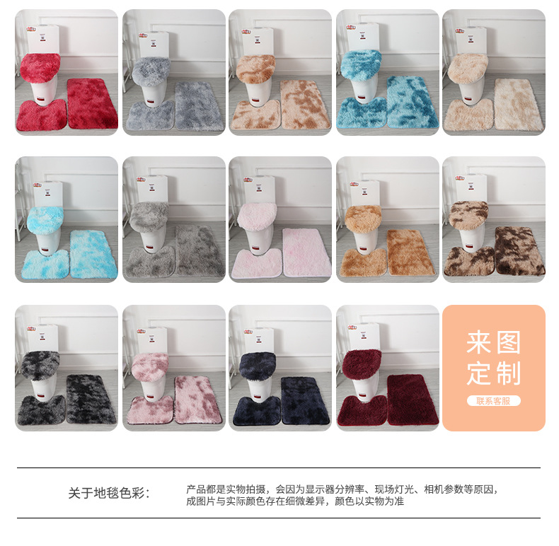 타이 염색 긴 양모 카펫 플러시 화장실 3 피스 미끄럼 방지 발 매트 욕실 흡수성 세트 크로스 보더 아마존 핫 세일스토어 가기