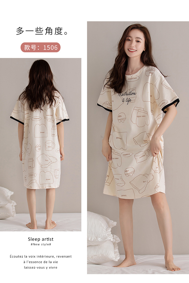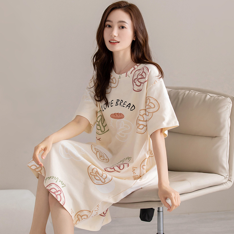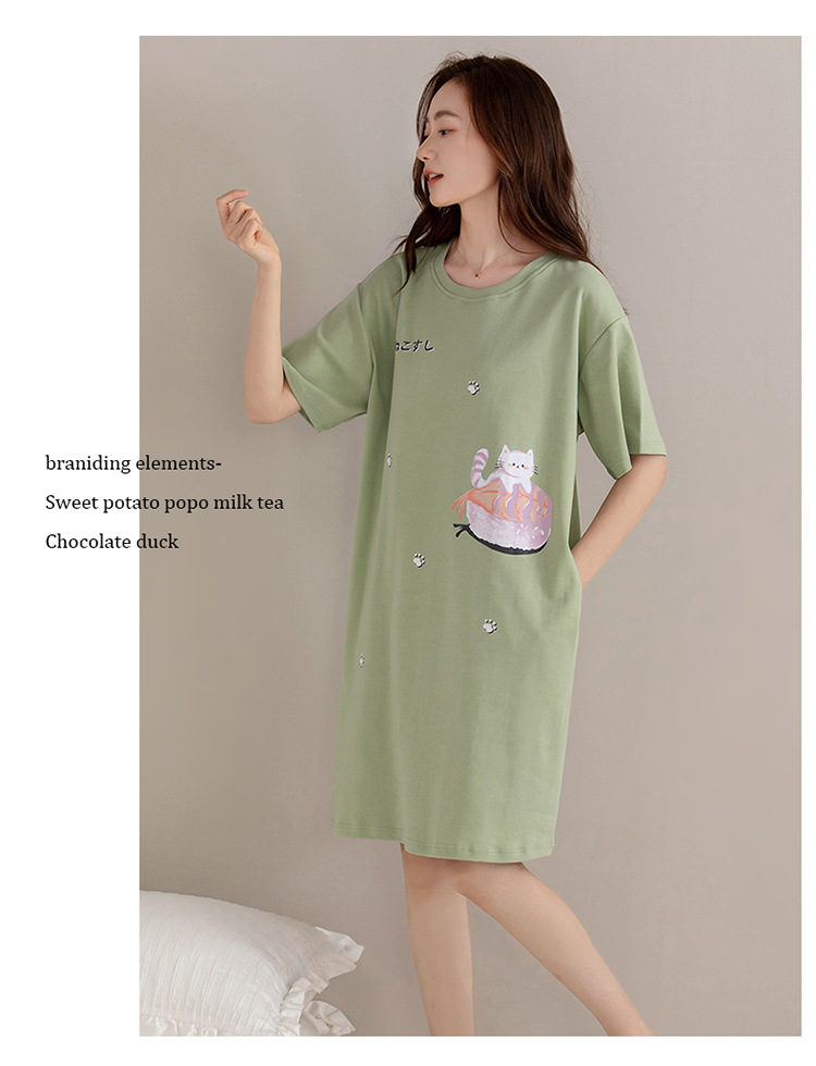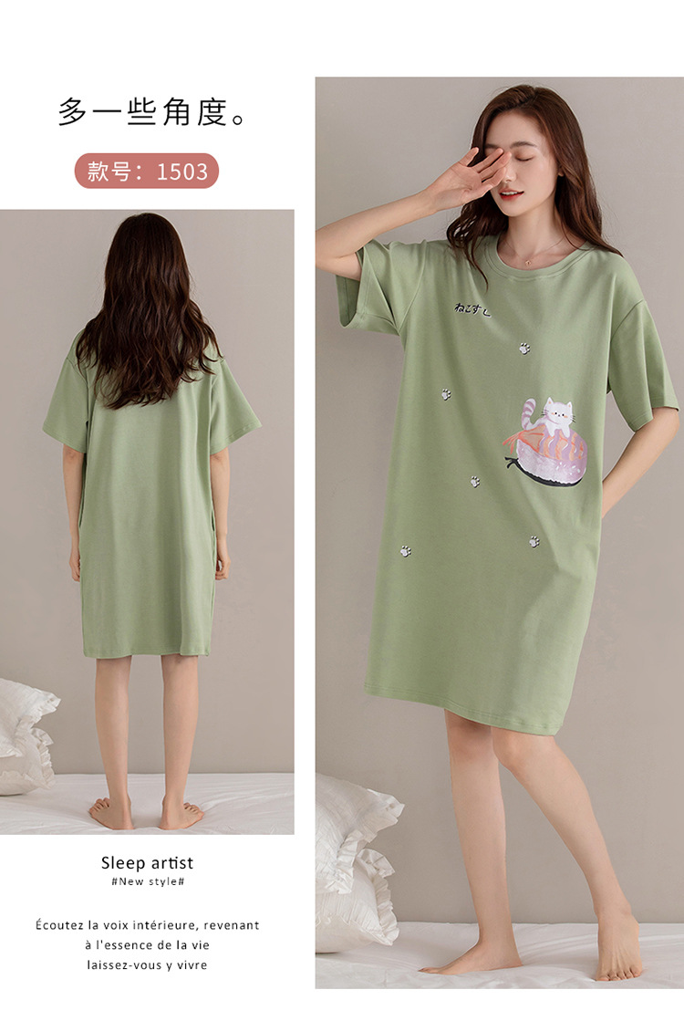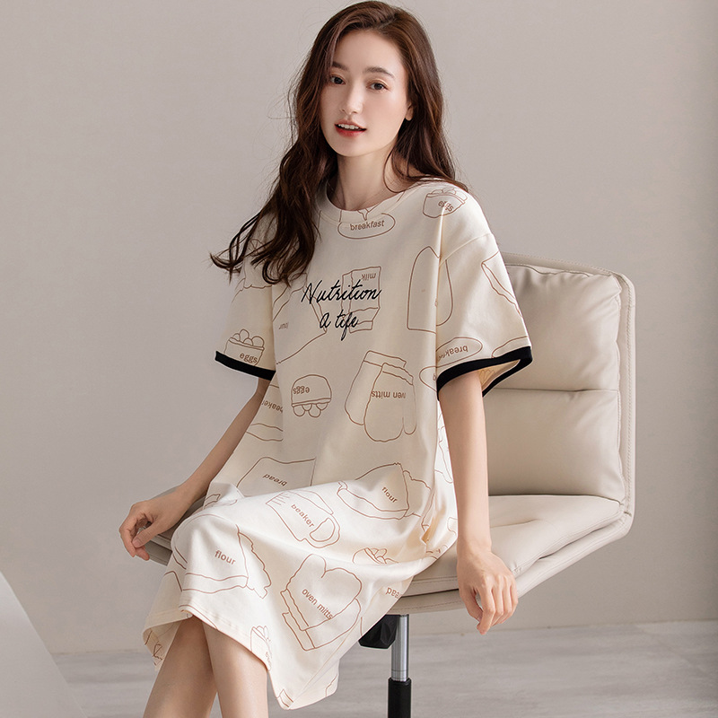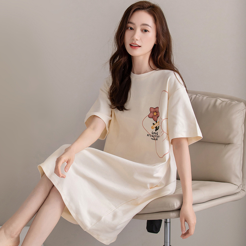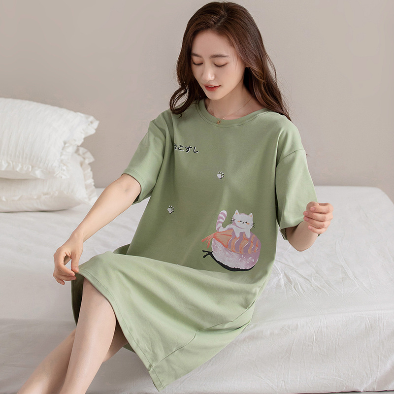 여름 순면 편안한 통기성 잠옷 짧은 소매 느슨한 요정 스타일 겉옷 착용 연령 감소 홈 중간 길이 원피스스토어 가기