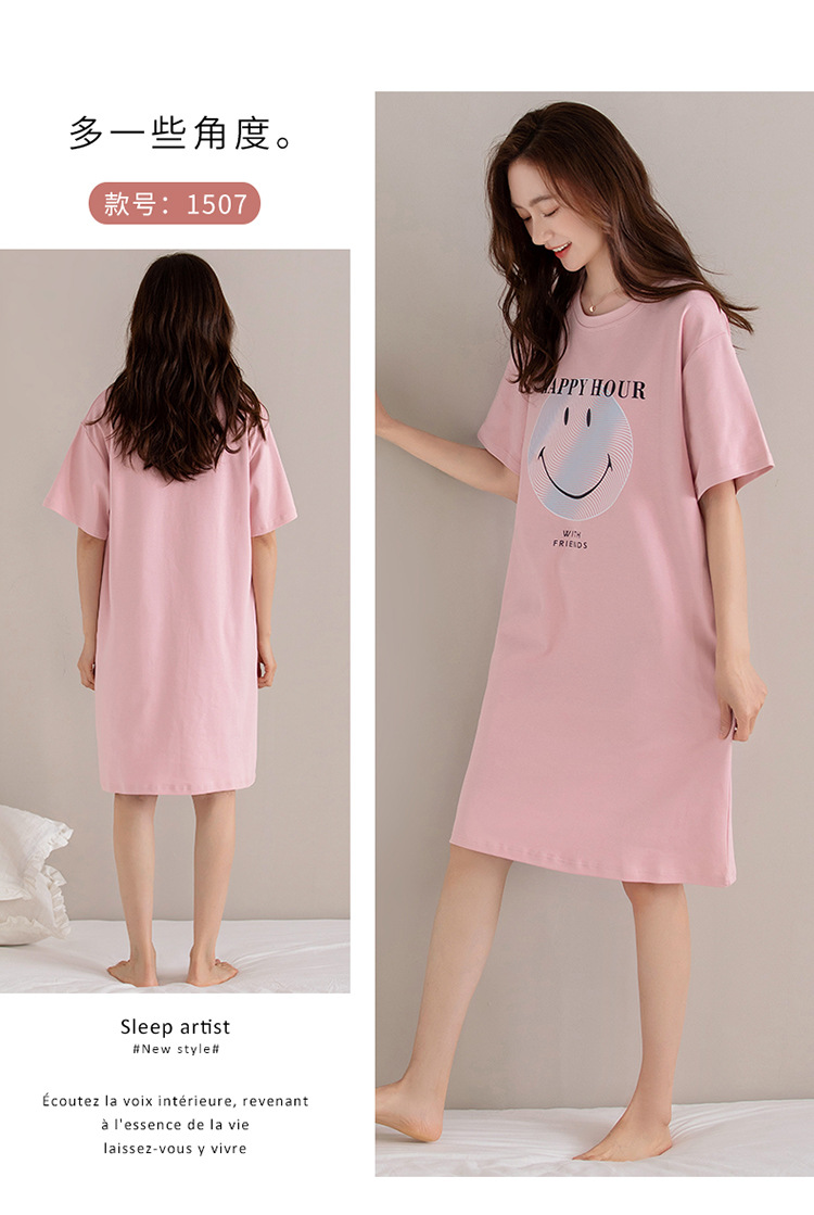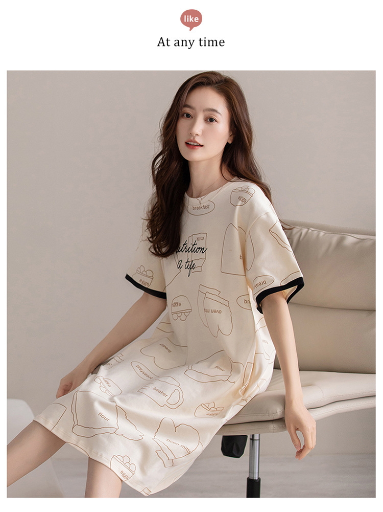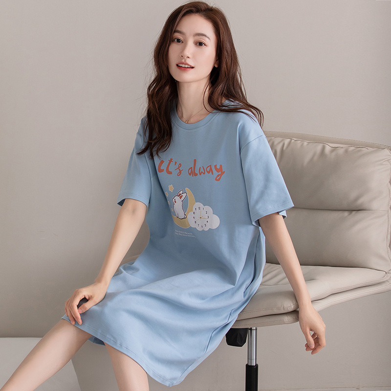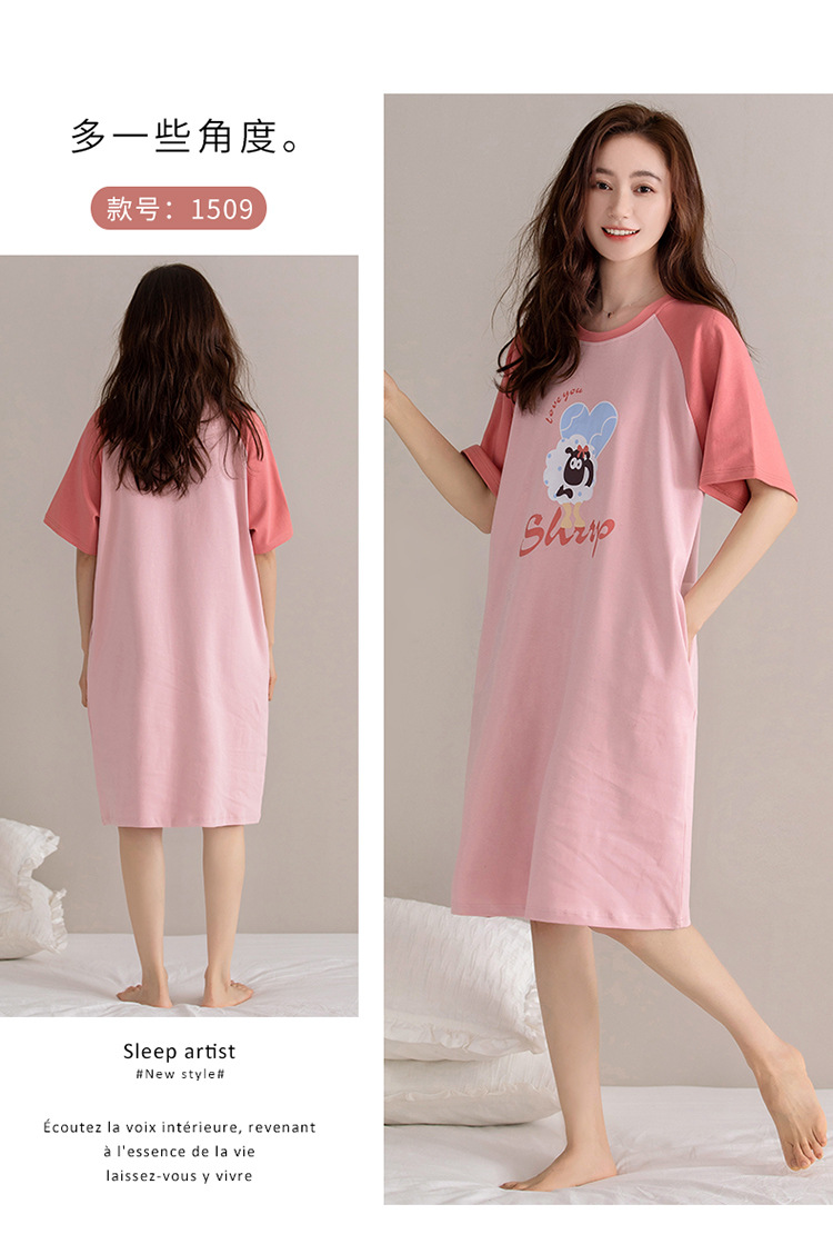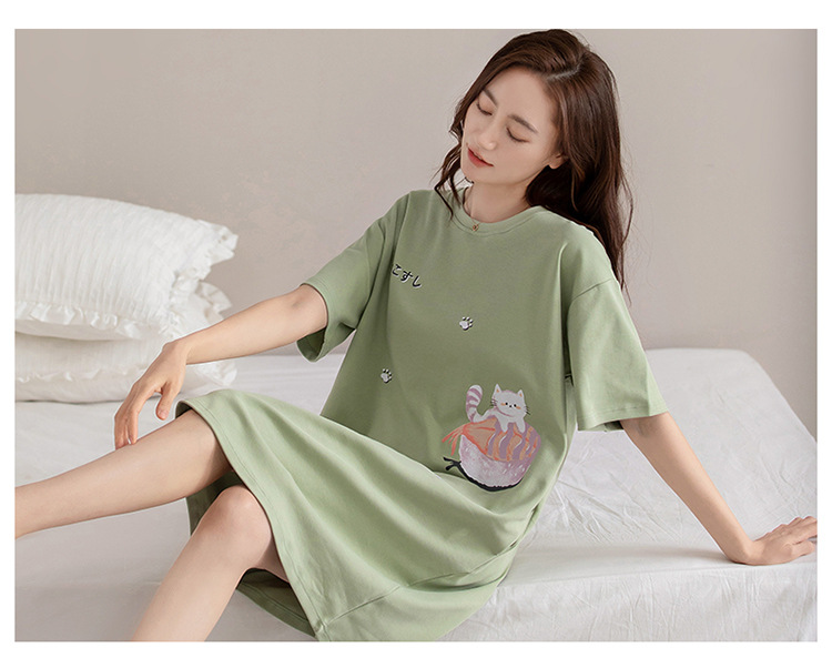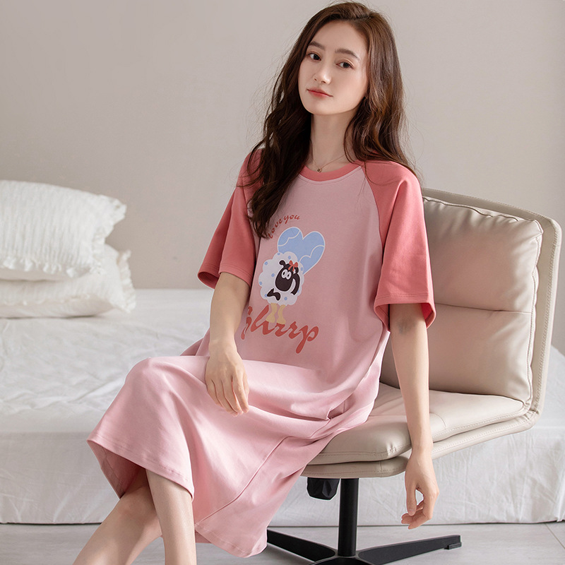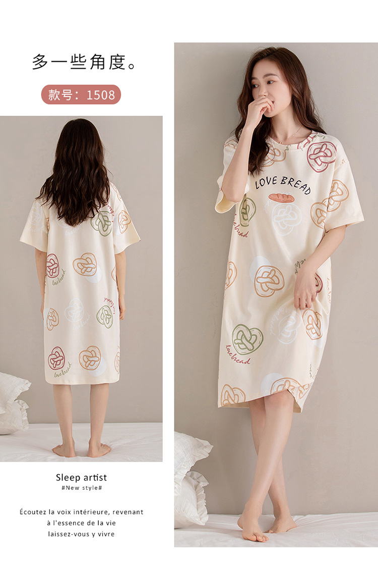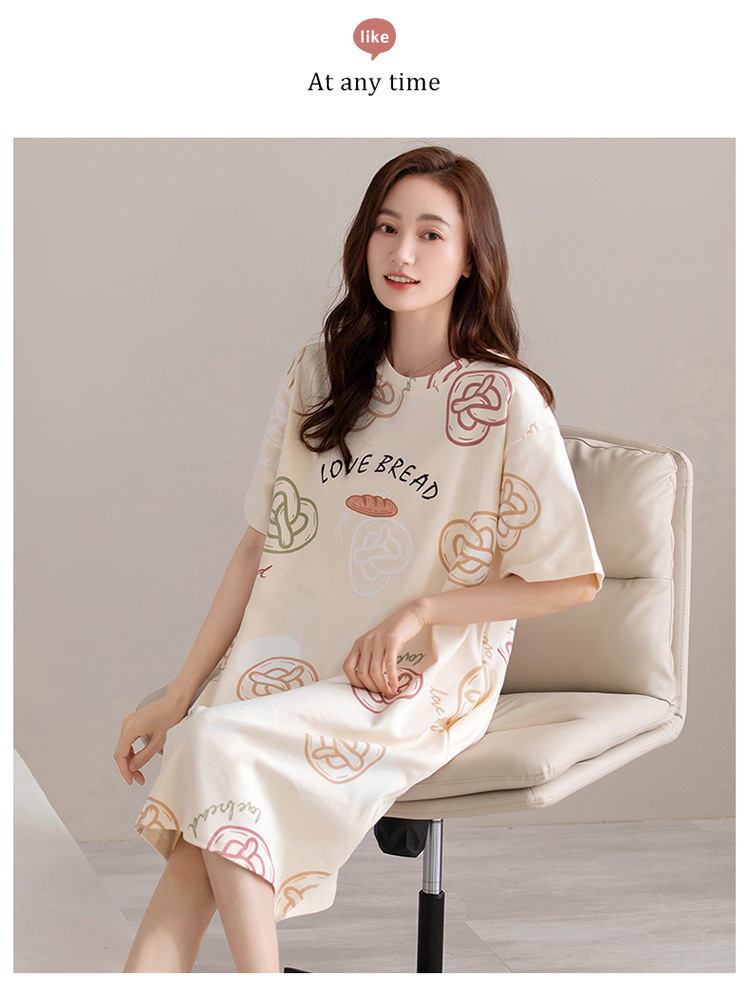 여름 순면 편안한 통기성 잠옷 짧은 소매 느슨한 요정 스타일 겉옷 착용 연령 감소 홈 중간 길이 원피스스토어 가기