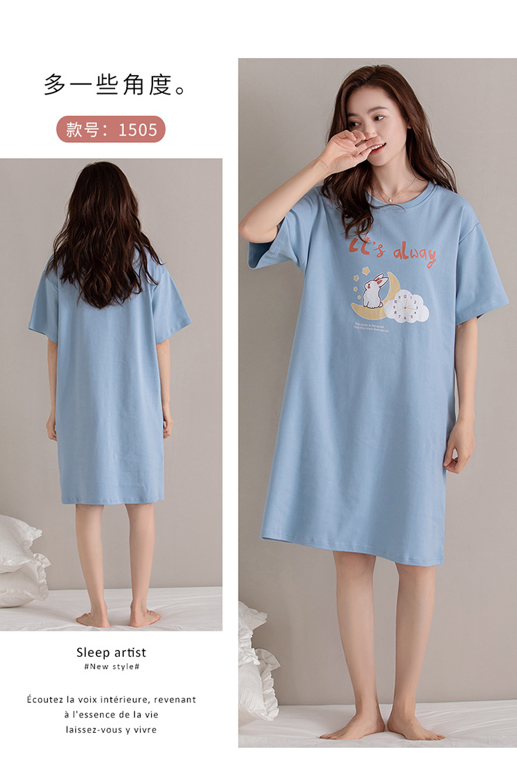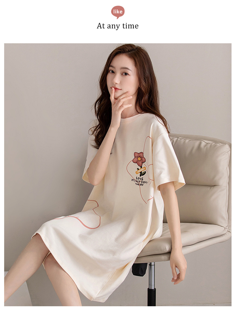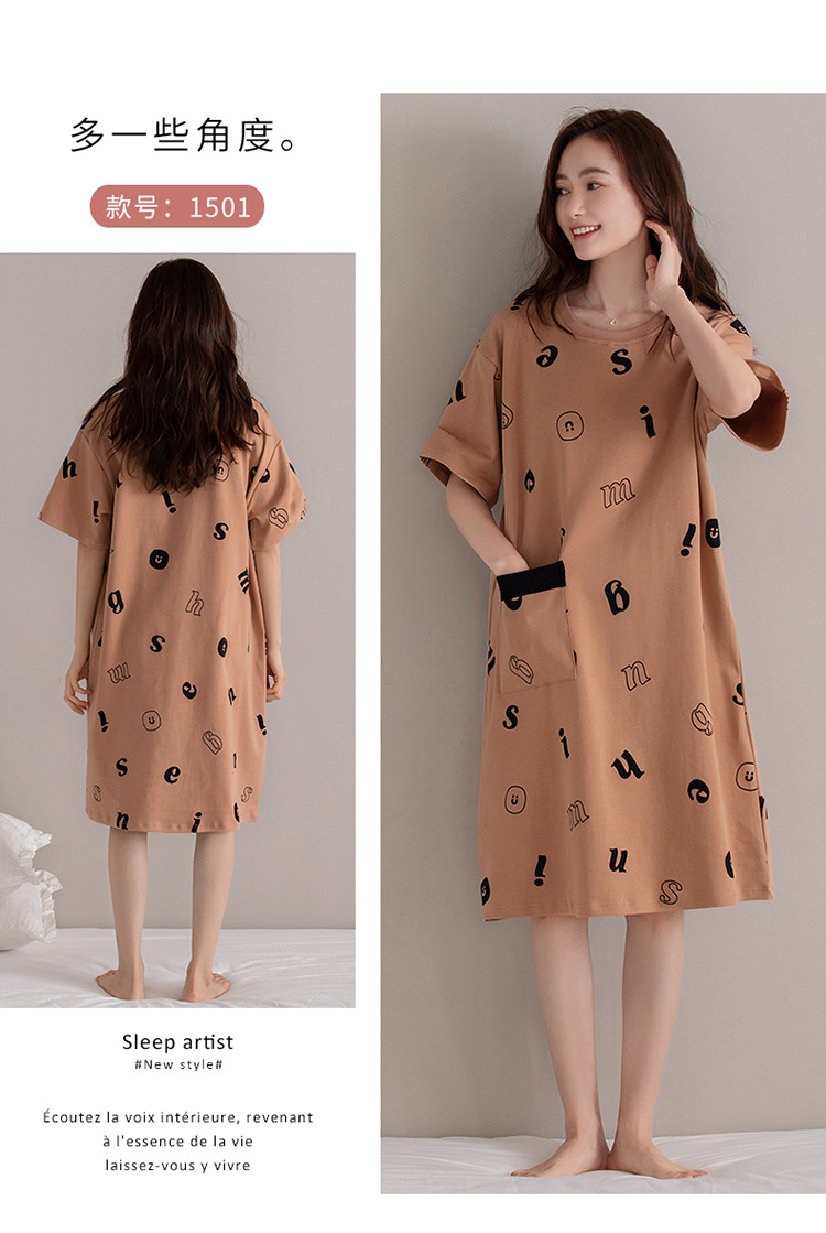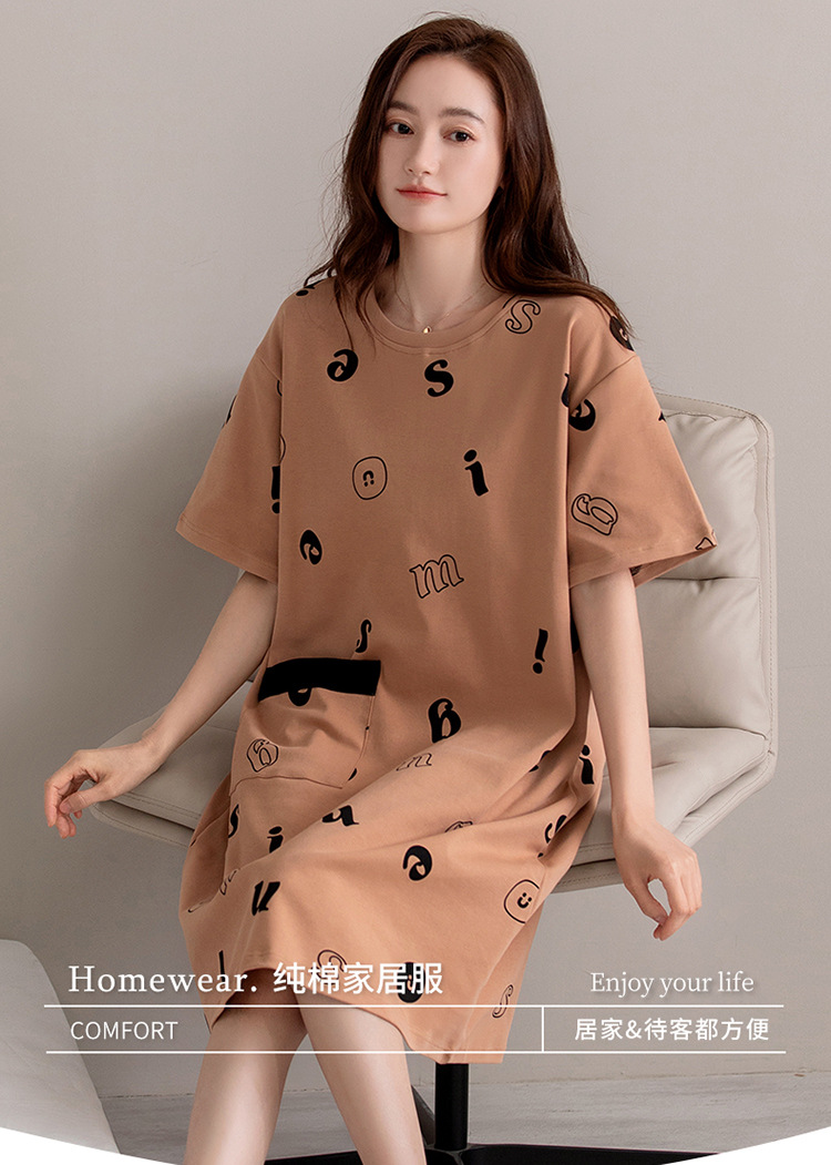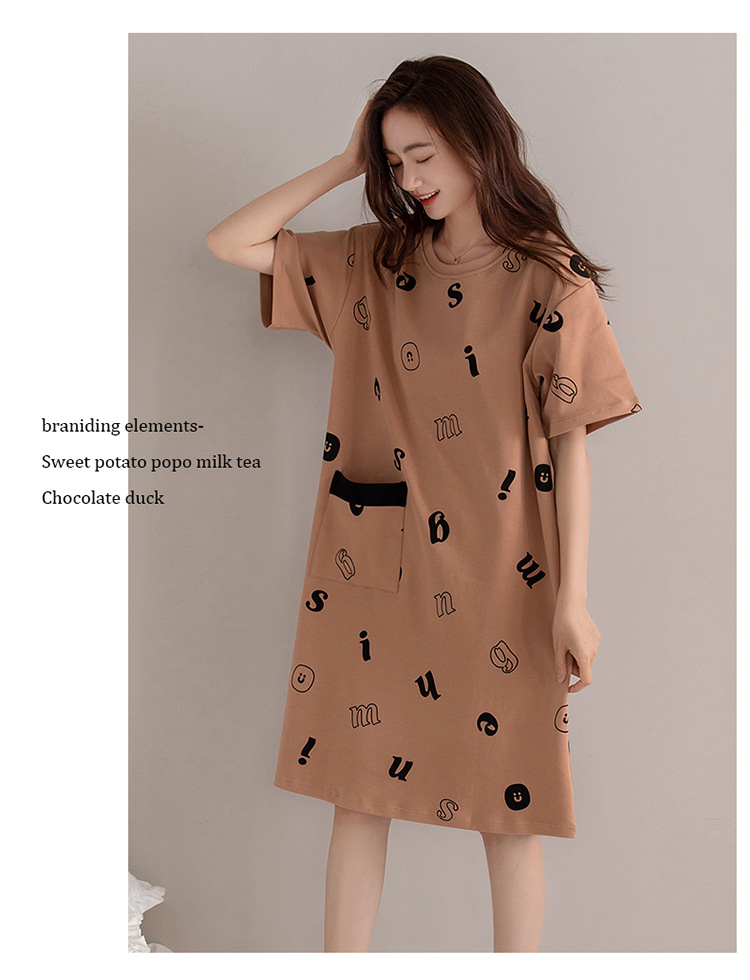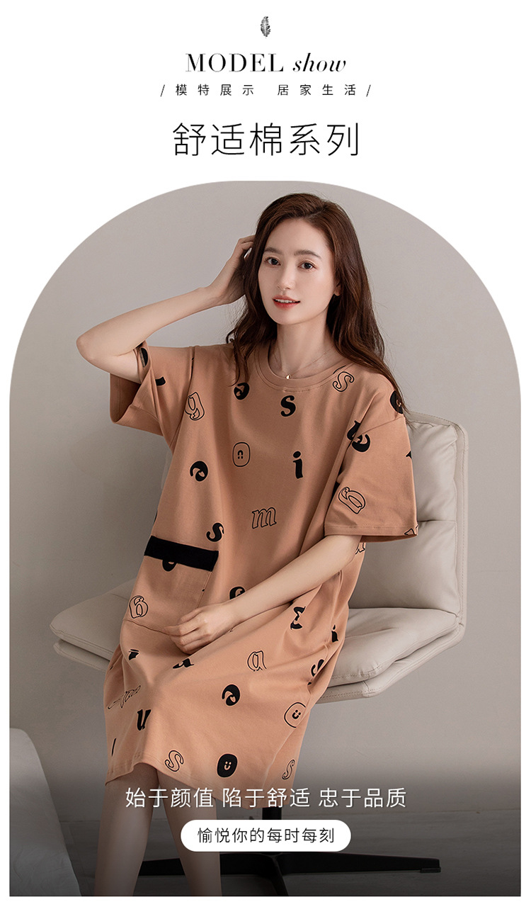여름 순면 편안한 통기성 잠옷 짧은 소매 느슨한 요정 스타일 겉옷 착용 연령 감소 홈 중간 길이 원피스스토어 가기