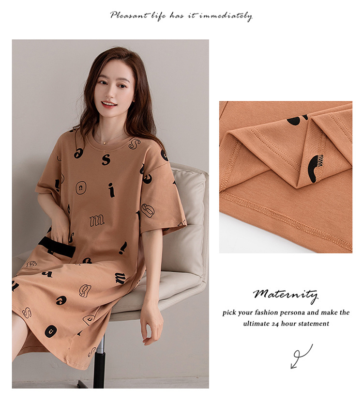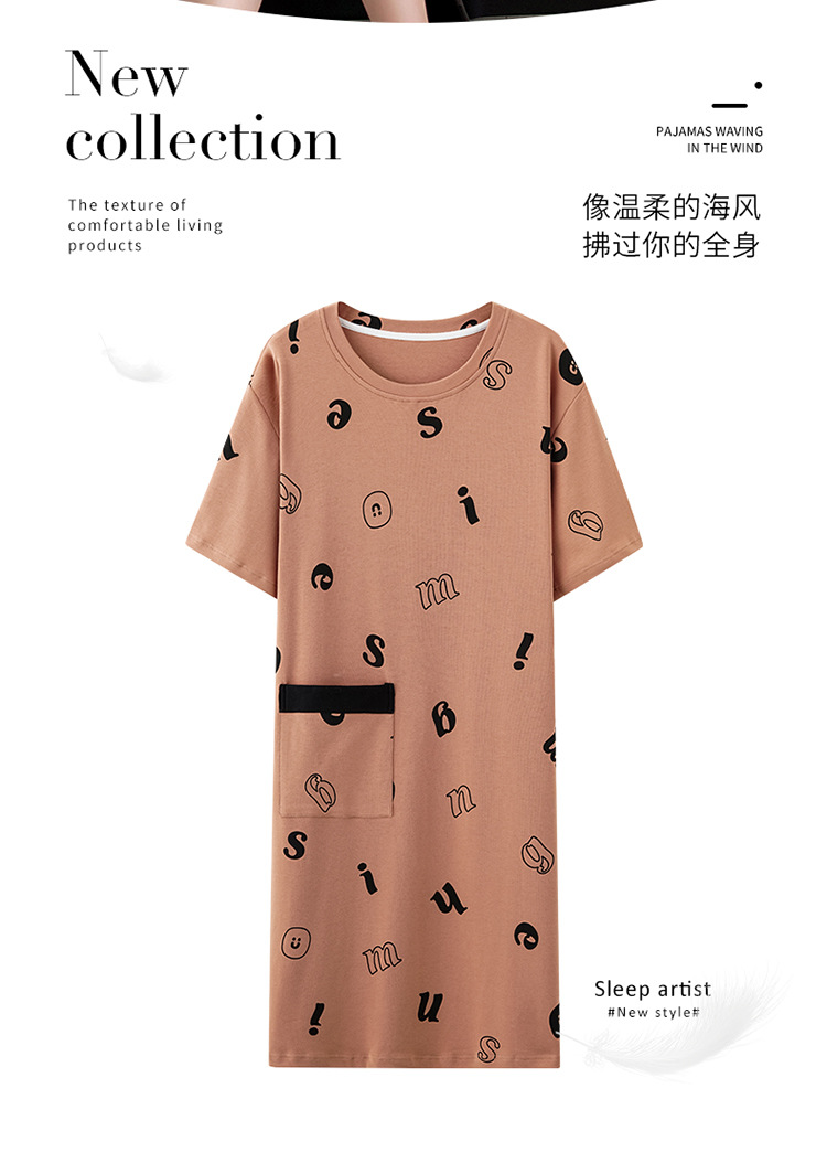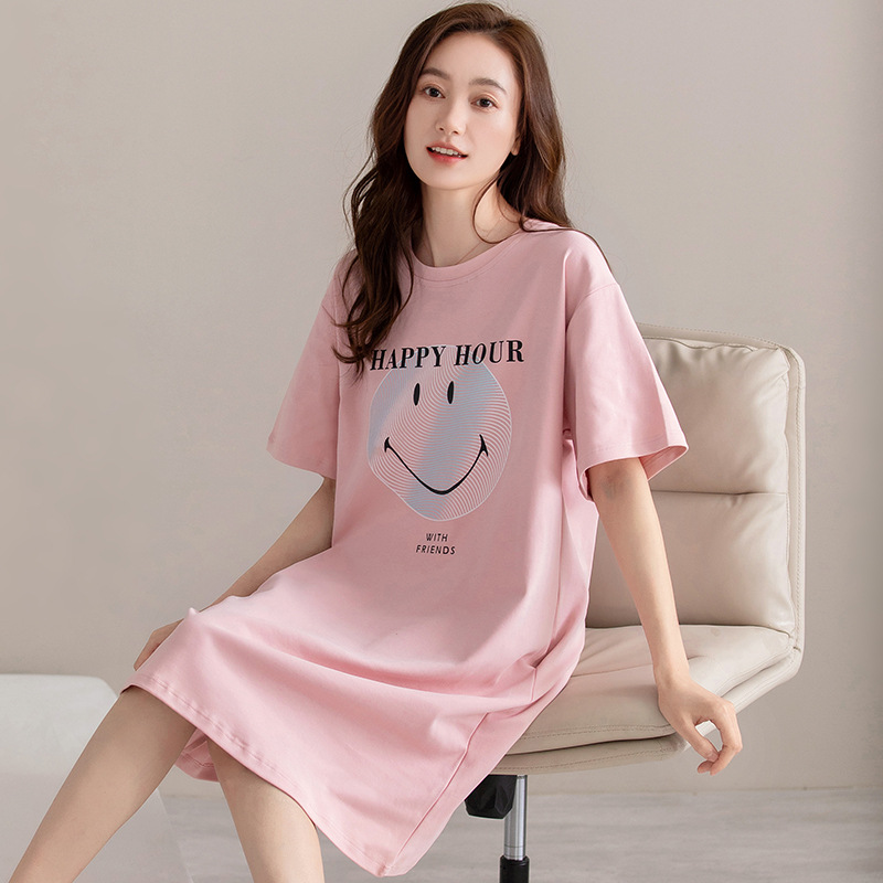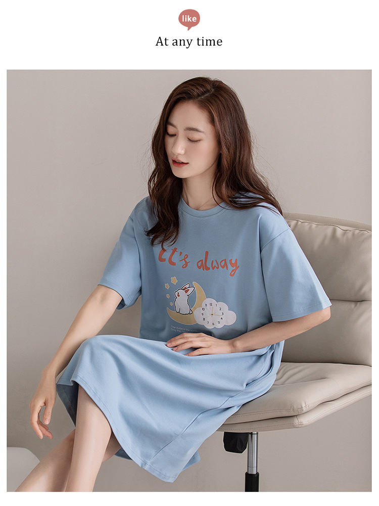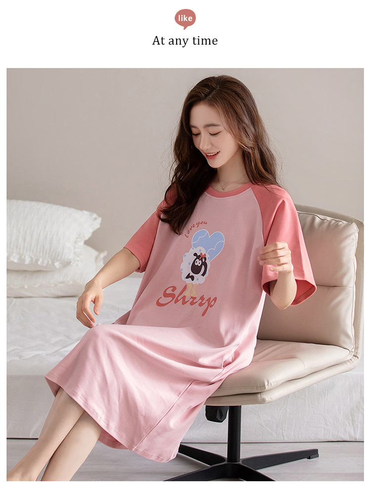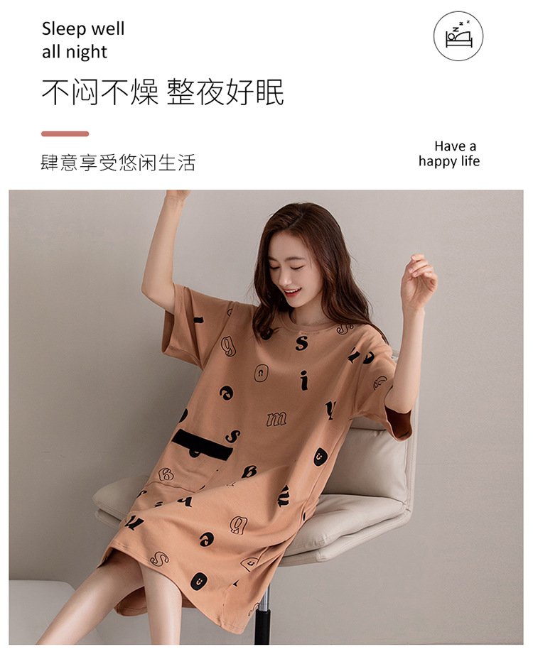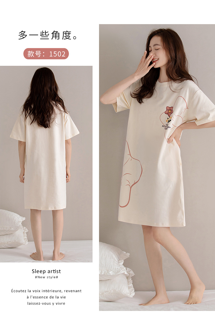 여름 순면 편안한 통기성 잠옷 짧은 소매 느슨한 요정 스타일 겉옷 착용 연령 감소 홈 중간 길이 원피스스토어 가기